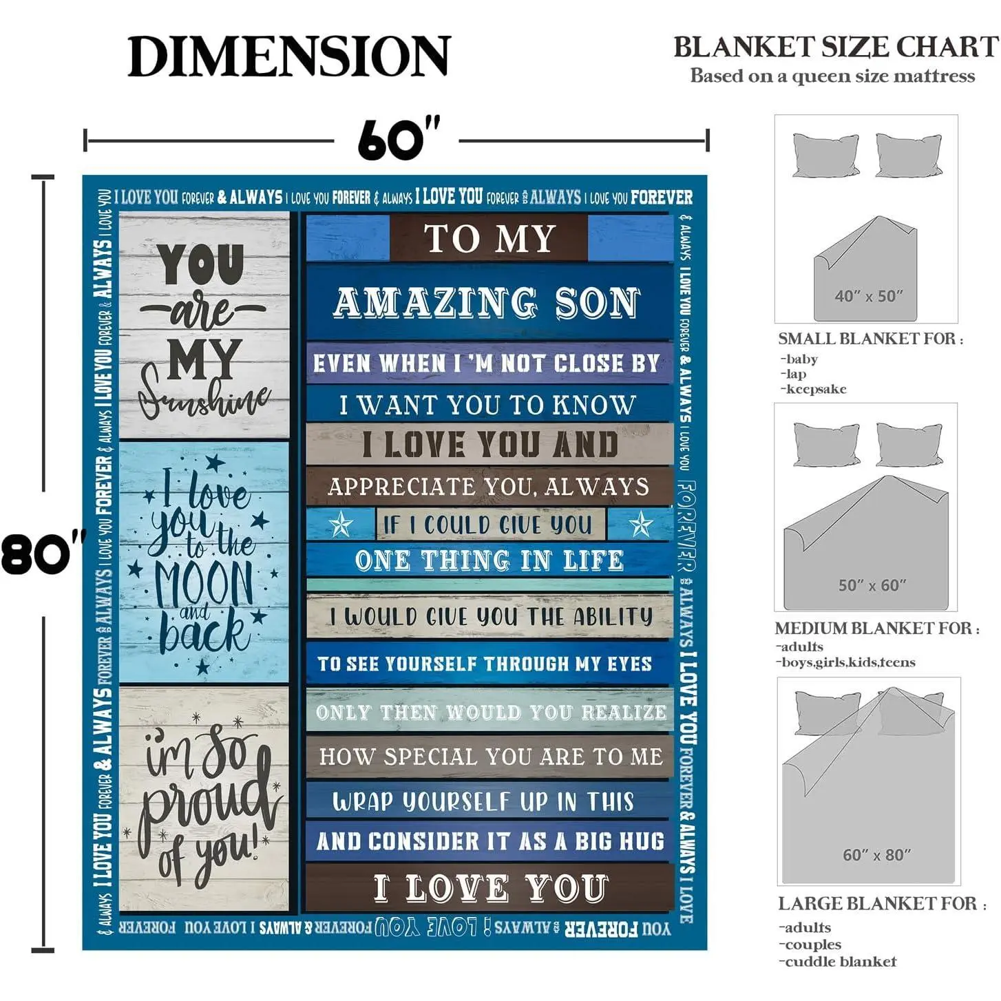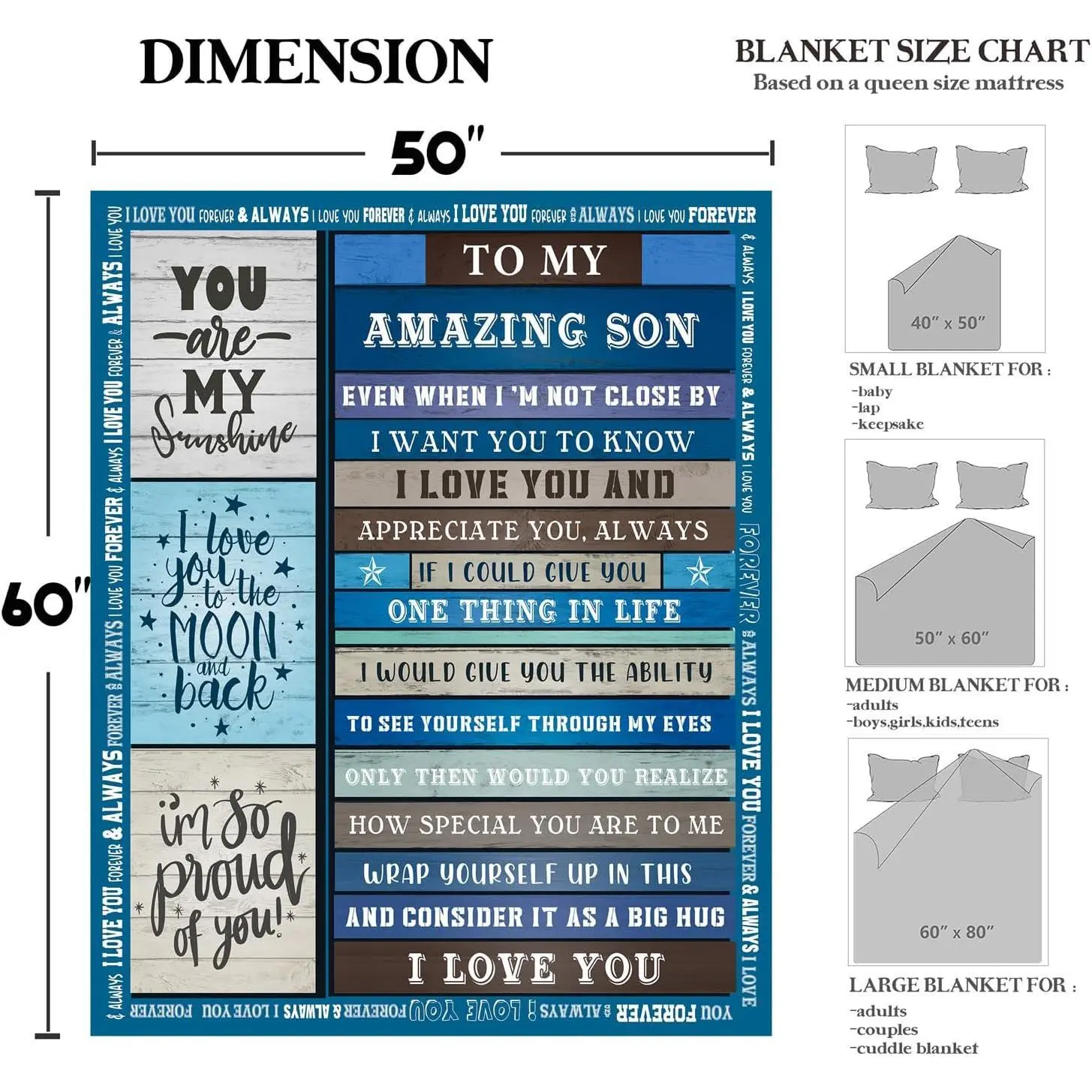 SoftHaven Gifts for Son Birthday Gifts to Son | to My Amazing Son Blanket with Many Great Words | Blanket Gifts for Son | Graduation for Son Throw Blanket 50"x60"