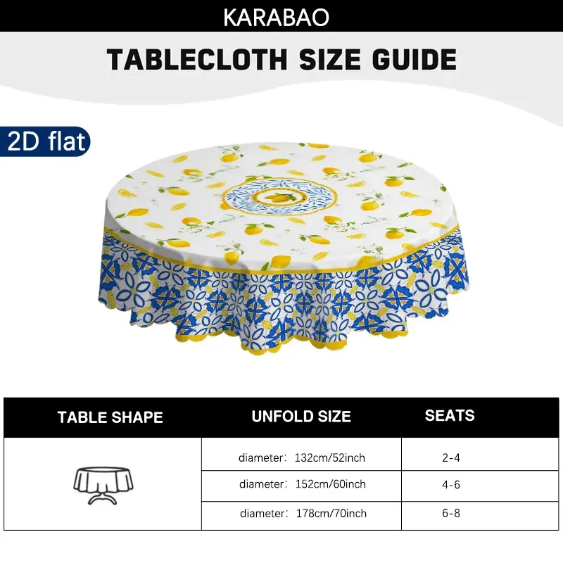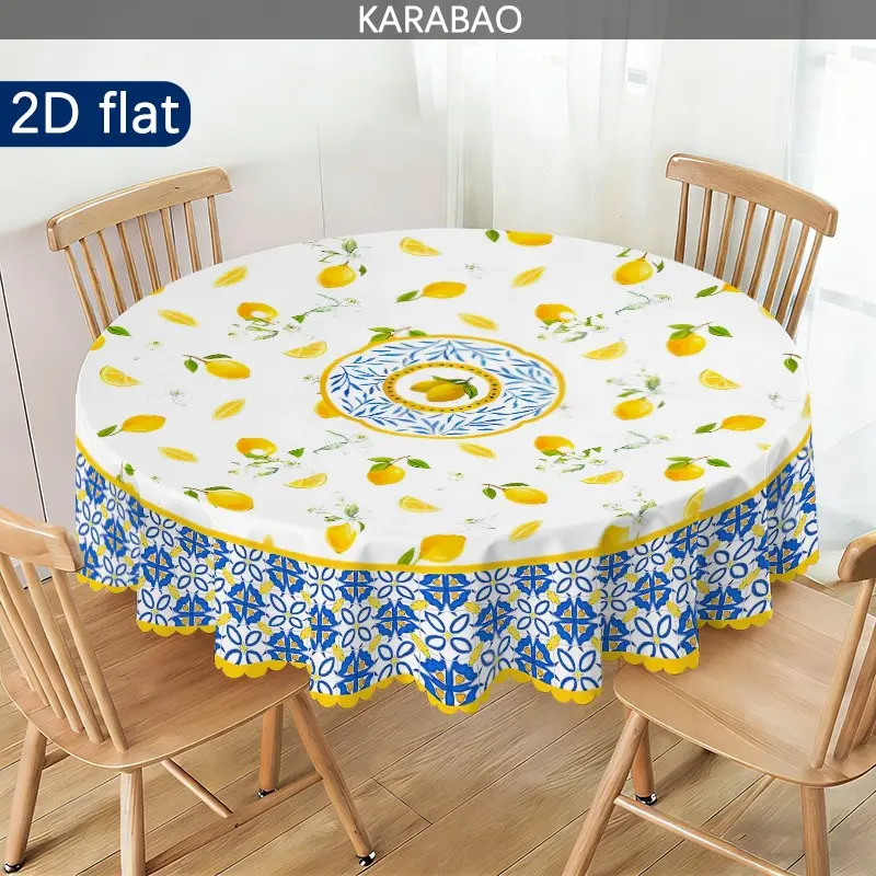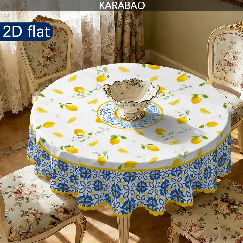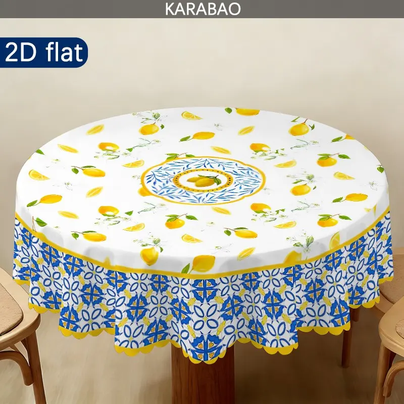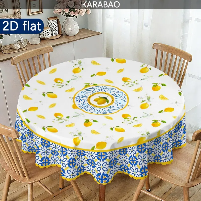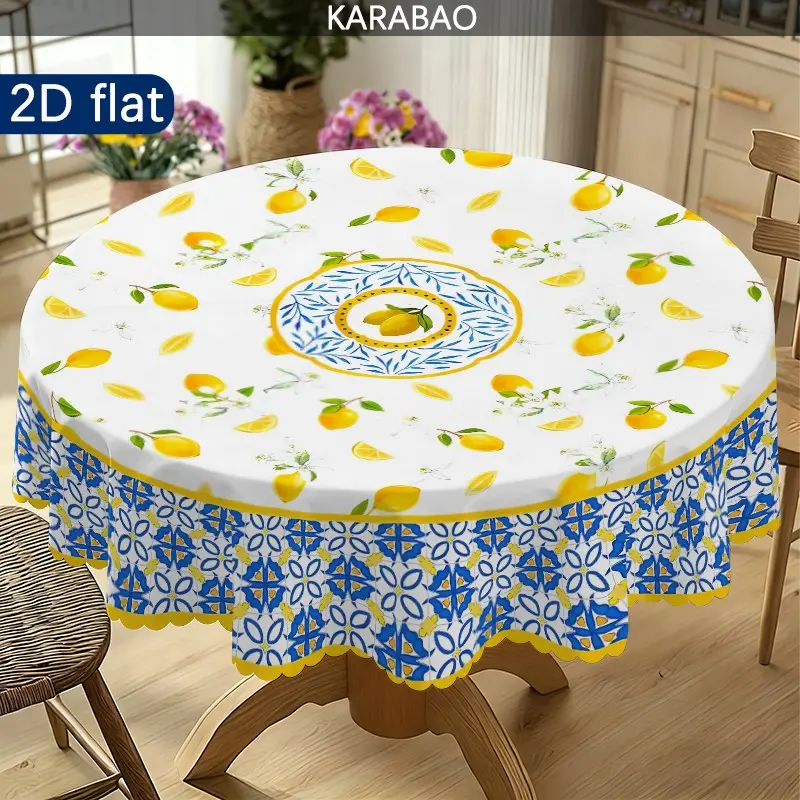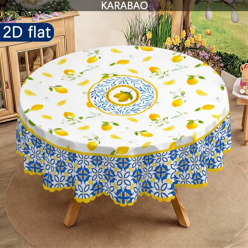 1pc Mediterranean Style Lemon Pattern Round Tablecloth, Home Decor, Outdoor Tablecloth, Picnic Accessory, Indoor and Outdoor Use