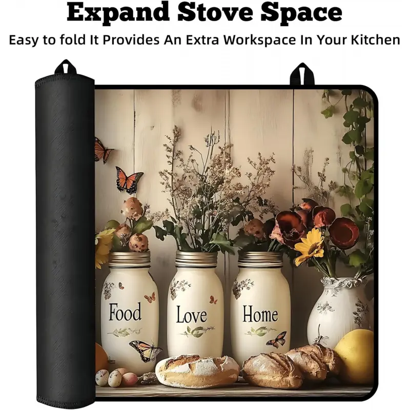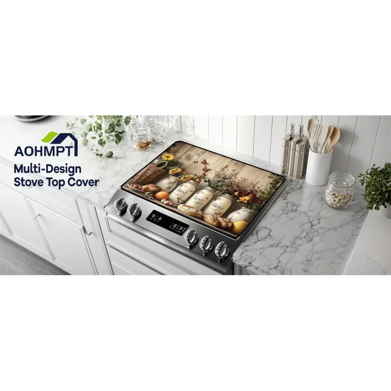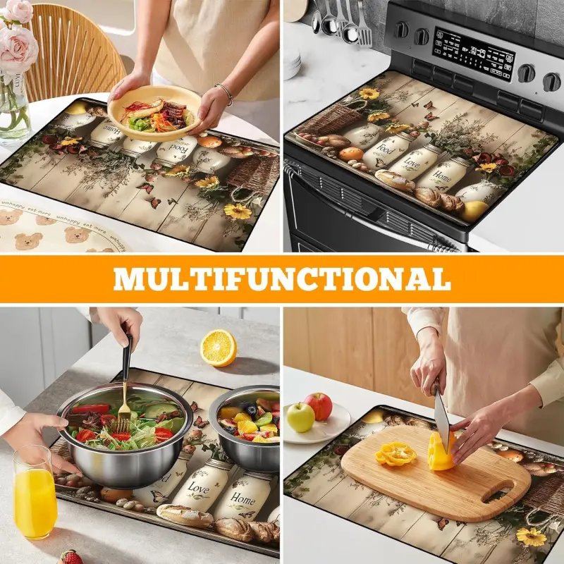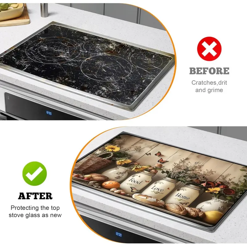 JOYFINITY Multi-Design Stove Cover for Glass/Electric Stoves - 3-in-1 Heat-Resistant Protector Mat, Non-Slip Drying Rack 28.4*20.5in