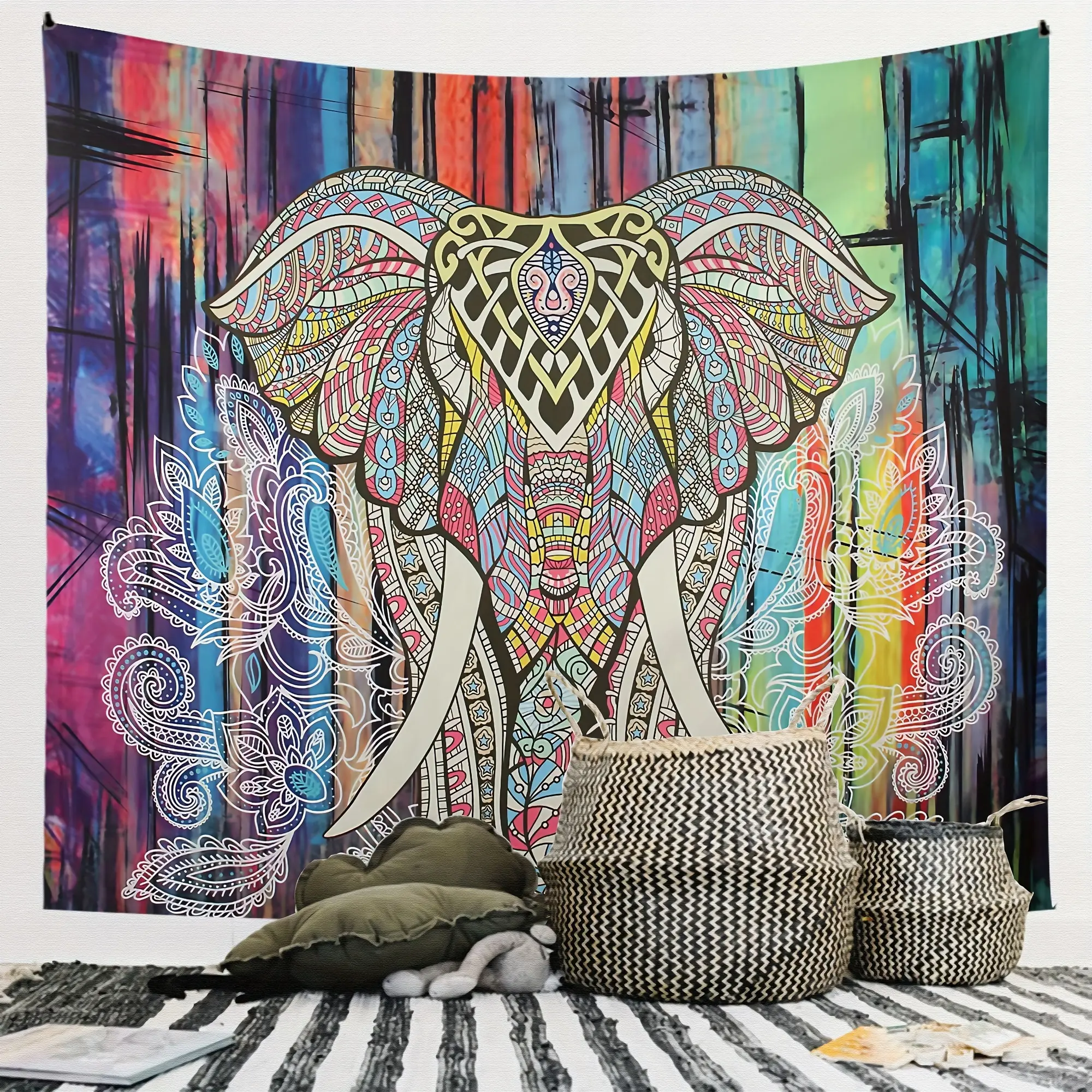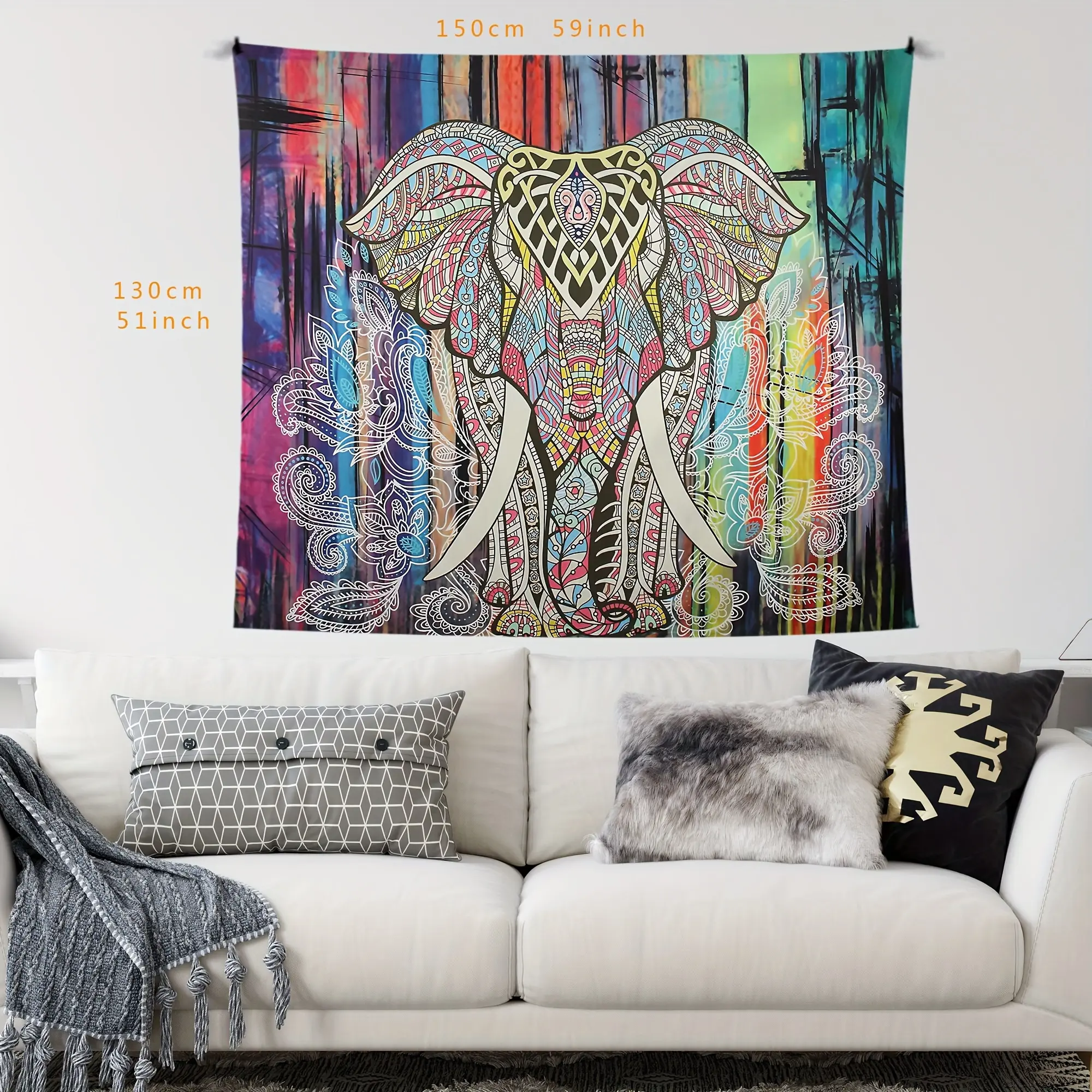 1pc Exotic Mandala Indian Elephant Canvas Tapestry, Ethnic Life Wall Rug Creative Religious Print Wall Decor, funny room tapestry durable man