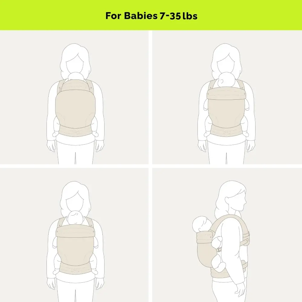 ·Designed to promote healthy hip and spine development, this carrier supports the natural 'M' position. Suitable for babies weighing 7 to 35 lbs, it features padded leg openings for added comfort and safety.