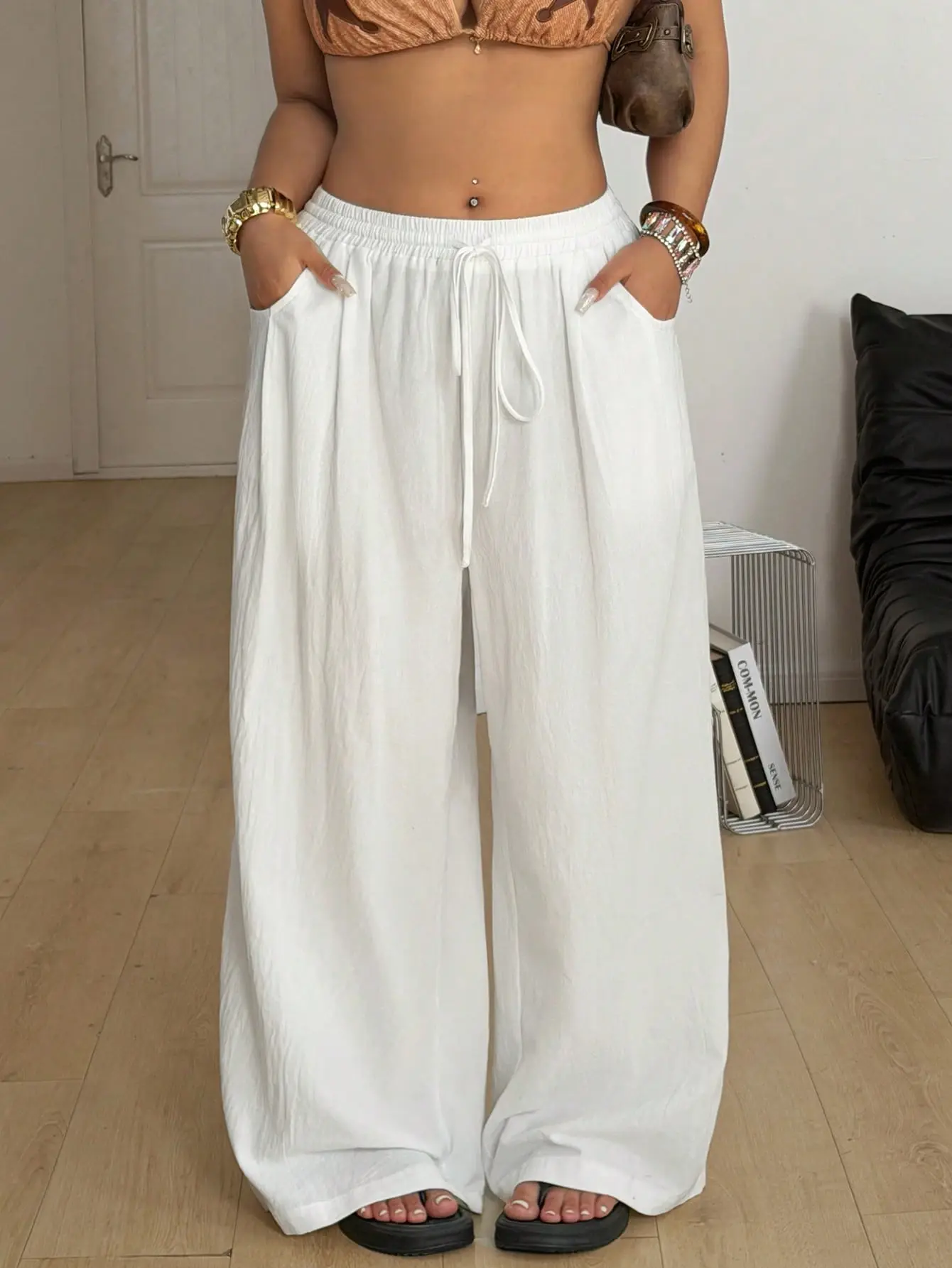 Plus size linen pants for those hot days when tight waistbands and stiff fabrics feel unbearable. If you’ve struggled with pants that cling to your stomach or feel restrictive when sitting, this relaxed fit solves it instantly. The high waist design smooths your midsection while the breathable linen fabric keeps you cool and comfortable all day. The baggy silhouette creates a longer, more balanced leg look without sacrificing ease. Perfect for travel days, casual outings, or slow weekends when you still want to look put together. These are the pants you’ll keep reaching for when comfort and effortless style matter most.