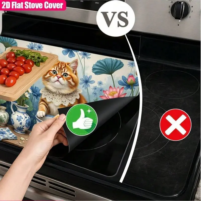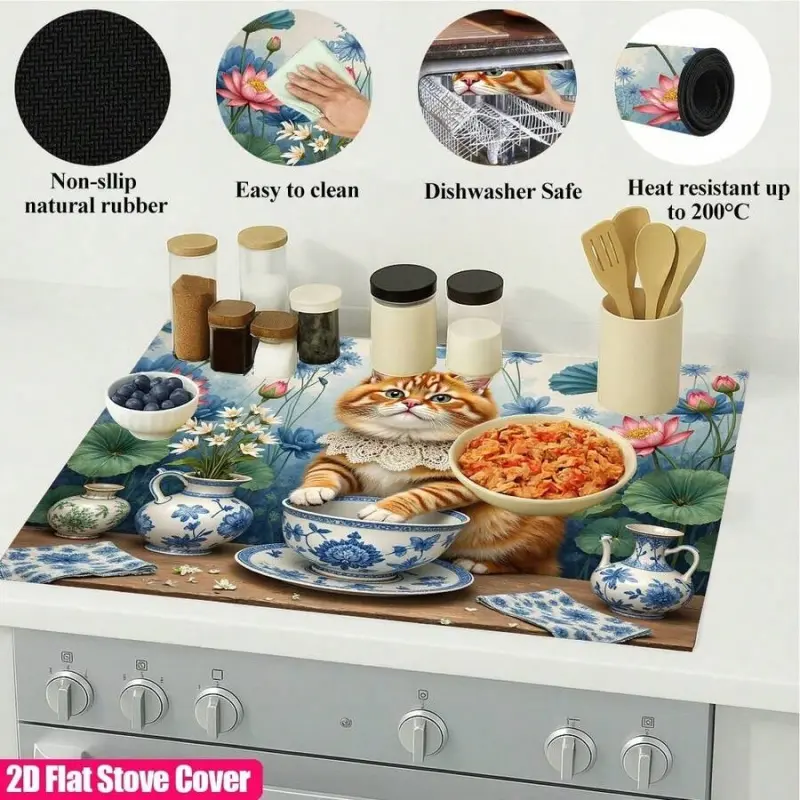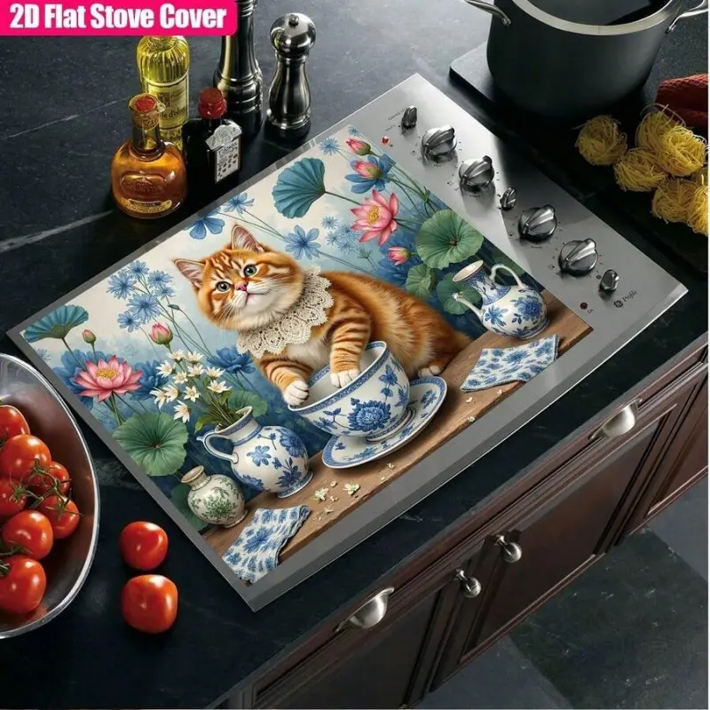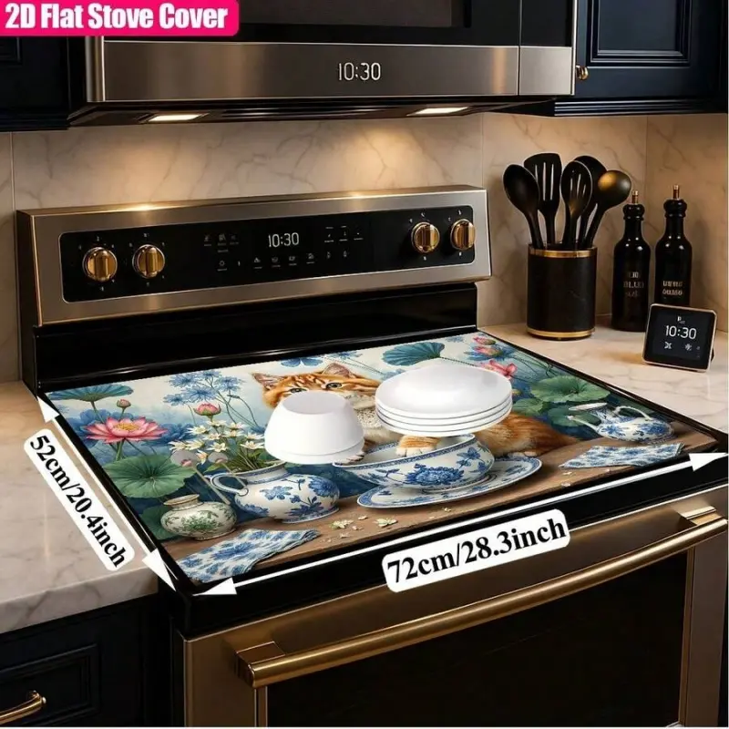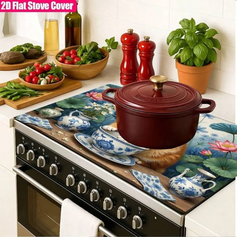 JOYFINITY 1 Stove Top Cover, Ginger Yellow And Floral Porcelain Design - Heat Resistant Non-Slip Surface, Blue And White Kitchen, With Lace Collar, Stove Top Protector, Home Decoration, Decorative, Essential Home Cooks