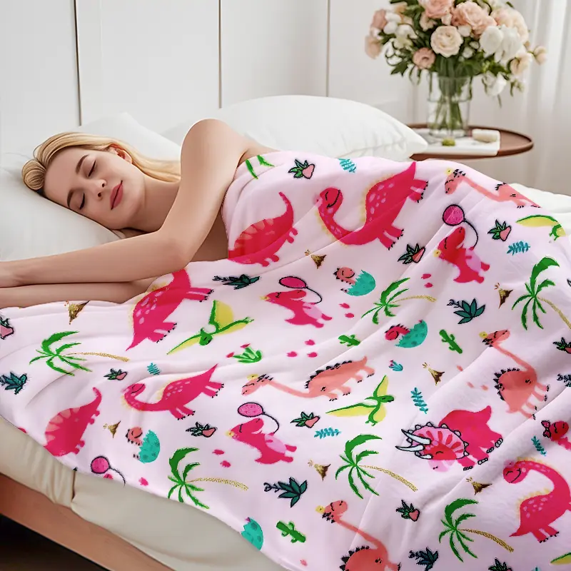 Pink Dinosaur Blanket For Girls: Viral Cute Dino Throw Blowing Up TikTok, Ultra Soft Plush Fleece Blanket Printed In USA For Toddlers & Dinosaur Lovers