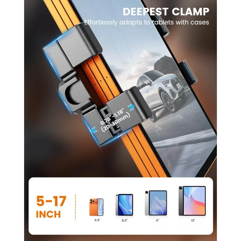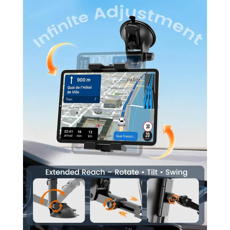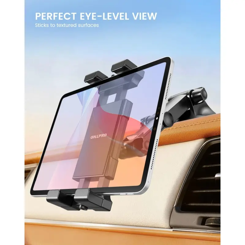This OHLPRO Tablet Holder fits 5-17" iPads, including Pro/Air/Mini. Ideal for trucks, SUVs, and semi-trucks. It's a stable mount for your car dashboard or windshield. A great tech gift for drivers and travelers. Enhance your driving experience with this versatile tablet holder.