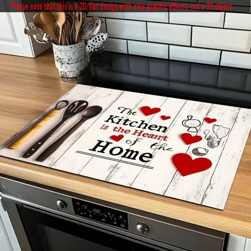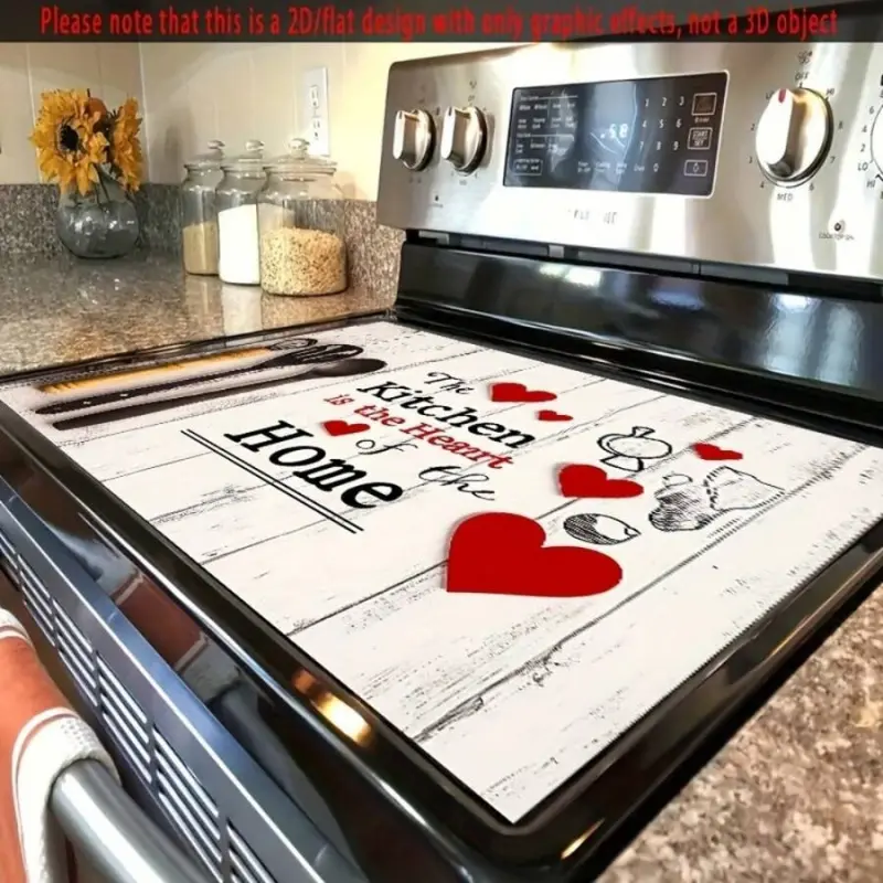 JOYFINITY [Heat Resistant Stove Cover] Heat Resistant 1pc 2D/Flat "Kitchen Is The Heart Of Home" Love And Kitchen Theme Furnace Cover Protector| Durable Design, Suitable For Valentine's Day Or Romantic Dinner Environments