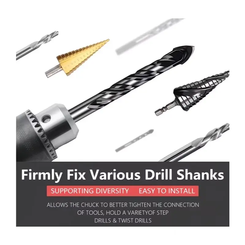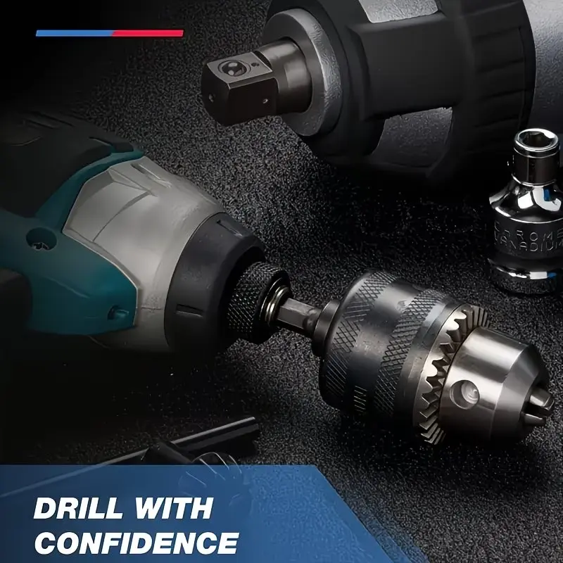【Quickly Lock & Release】The Socket Drive Chuck Adapter adopt a classic keyed 3-jaw design, clamping stable and firm, not easy to slip. It can clamping a variety of step drill and twist drill, compatible with most models of corded and cordless drill, has a better concentricity and stablity when drilling, can be quickly and safely connected to power tools.