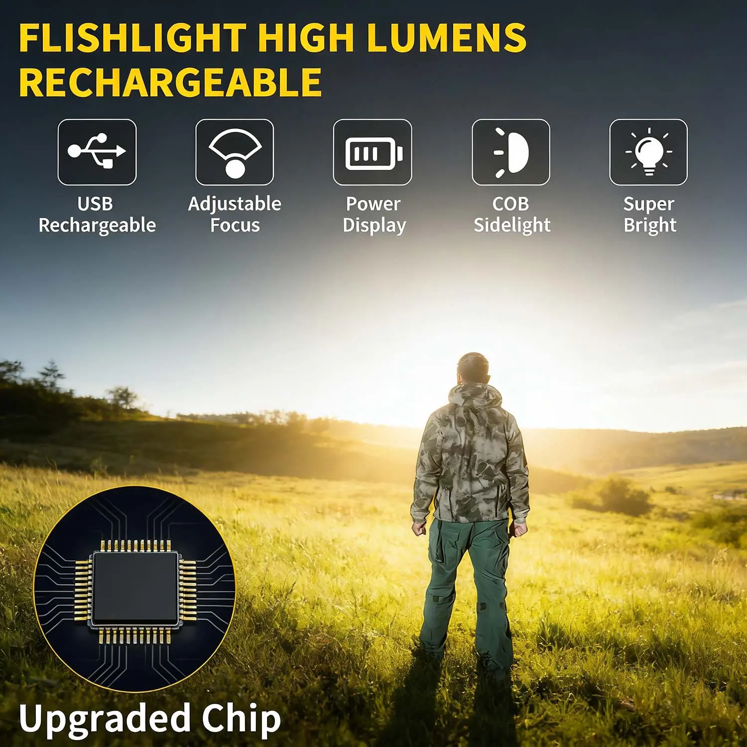 Rechargeable LED Flashlights High Lumens, 7 Modes Super Bright Tactical Flashlight, Adjustable Zoomable Powerful Torch, Emergency Gear for Home, Hunting, Camping, Hiking