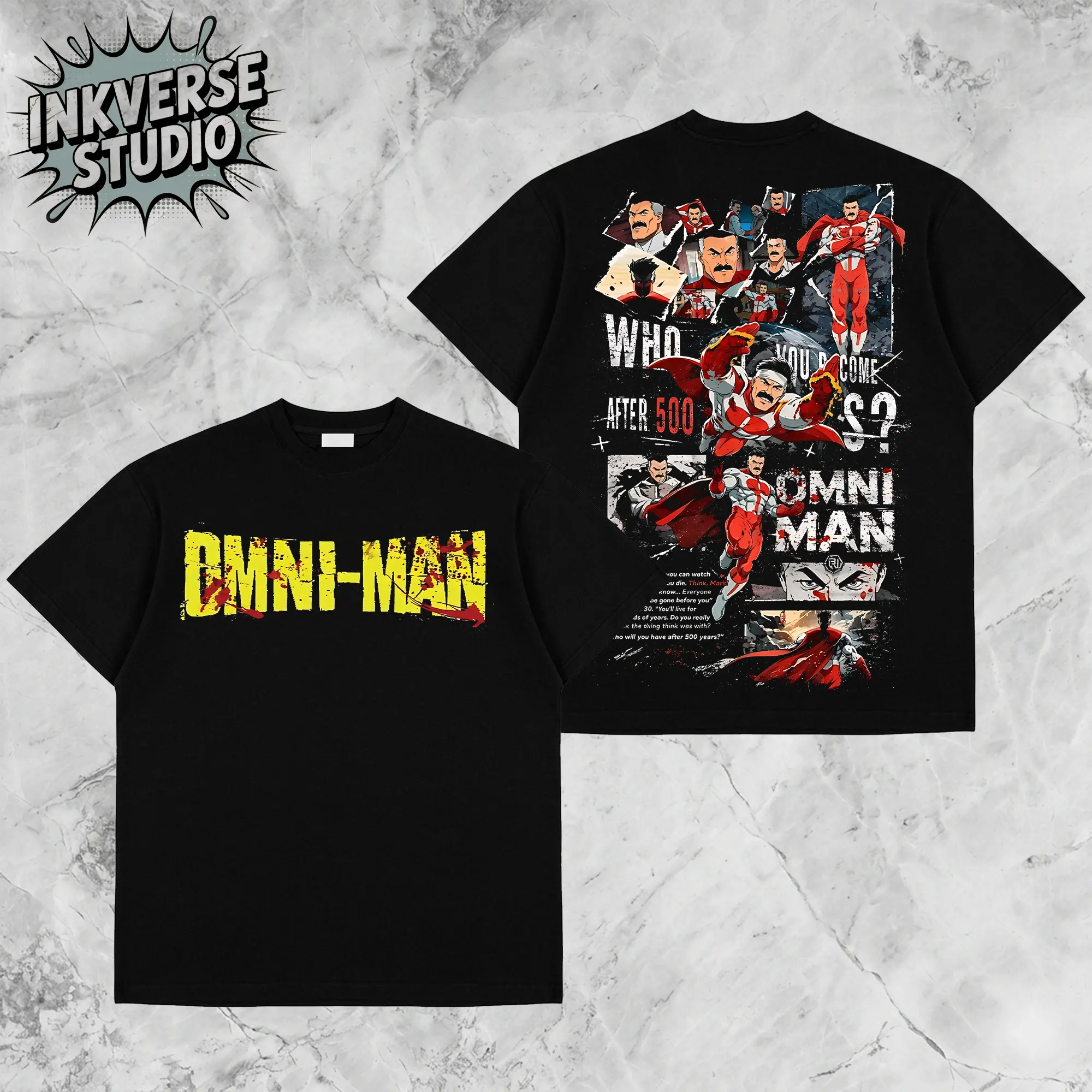 InkVerse Retro Invincible War Omni Man V2 Graphic Tee, Invincible MCU Animated Series T Shirt, Superhero Punch Comic Design, Oversized Streetwear Unisex Tee, Vintage Bloody Comic Style, Gift for Invincible Fan, Adult Animation Merch