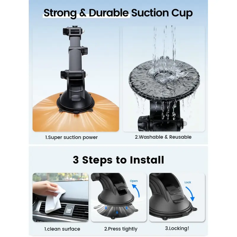 OHLPRO Magnetic Tablet Holder for Car Dashboard & Windshield, Adjustable Suction Cup Mount with Extendable Arm, 360 ° Rotation, Washable Base, Compatible with iPad, for Magsafe iPhones, Tablets