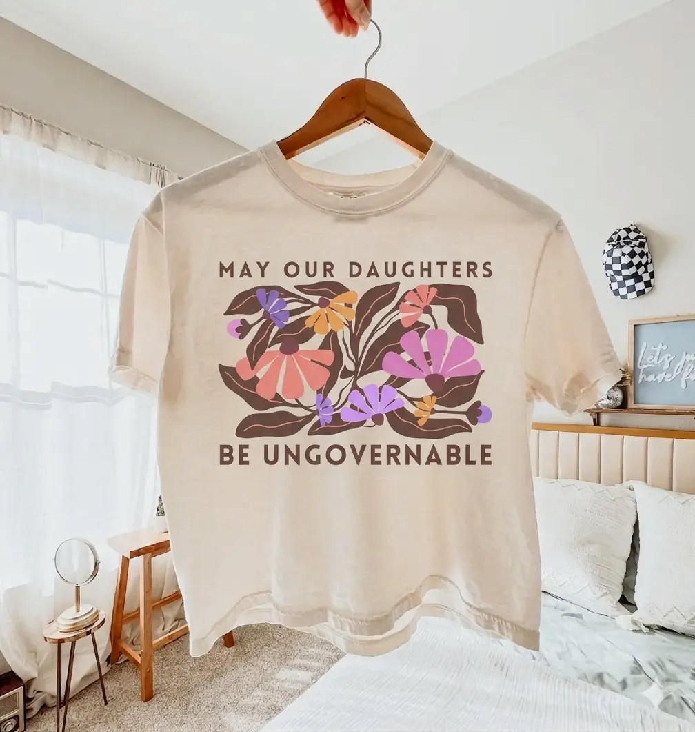 5. Comfort Colors Boxy Crop Top Feminist Shirt: Retro Floral Ungovernable Daughters Tee, Y2K, Fashion, Streetwear, Women, Cotton Crew Neck