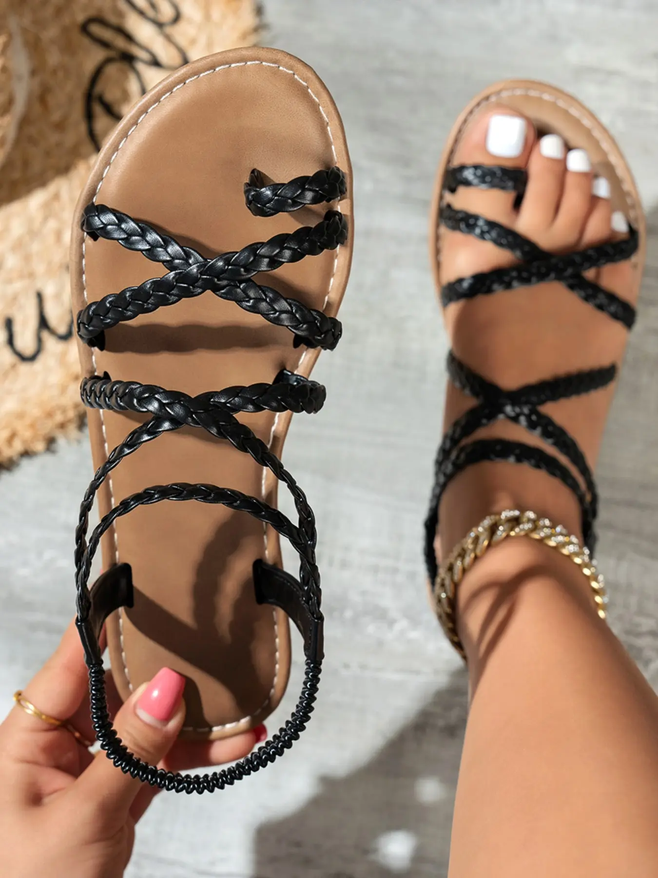 Hand-woven cross-strap flat sandals women's, bohemian holiday beach shoes, soft-soled non-slip open-toed Roman sandals