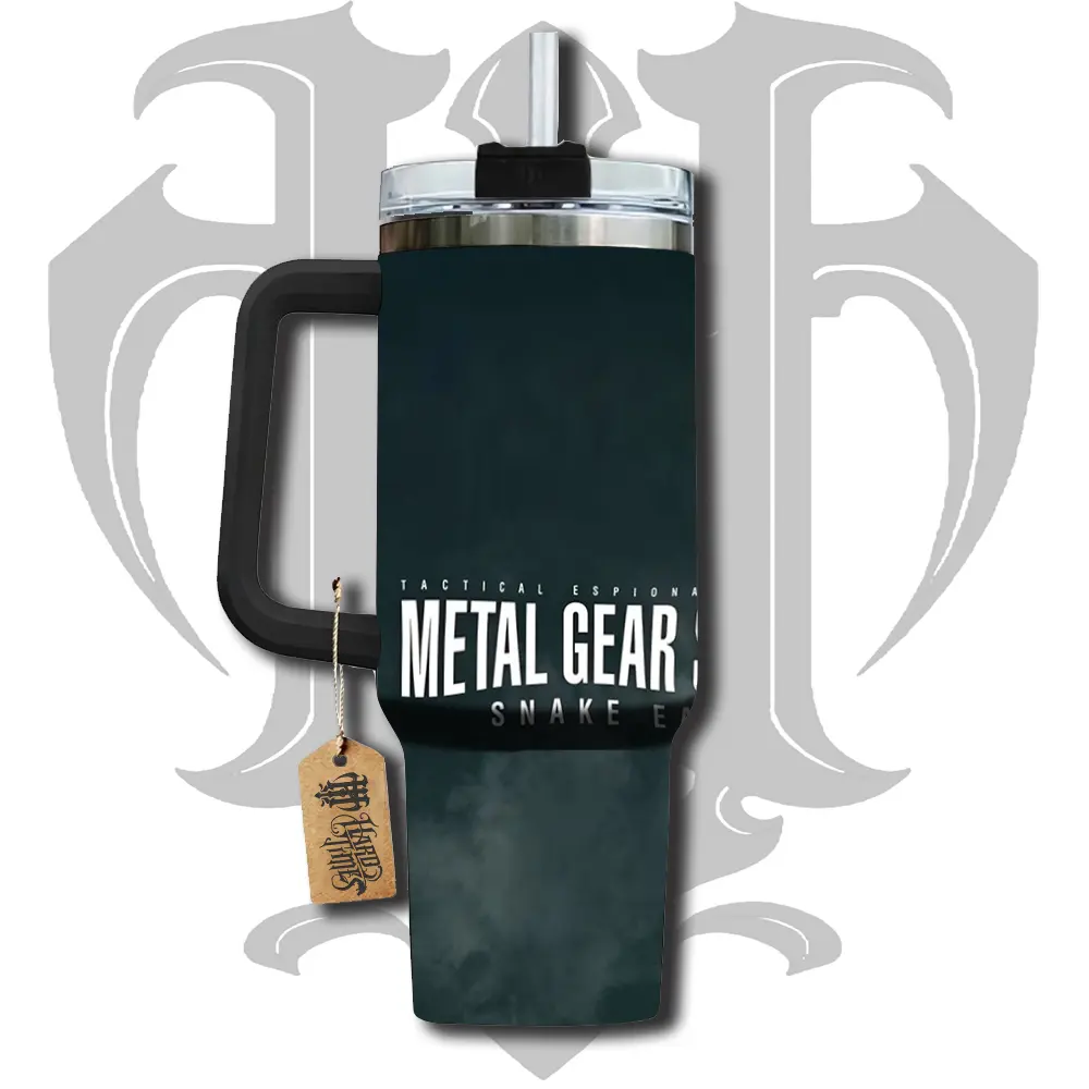 HardTimesMerch - Metal Gear Solid Delta #1 40oz Handle Tumbler Stainless Steel Travel Mug, Game Inspired Vacuum Insulated Cup, Large Iced Coffee Tumbler, Manga Fighter Drinkware, Gamer Gift for Him Her