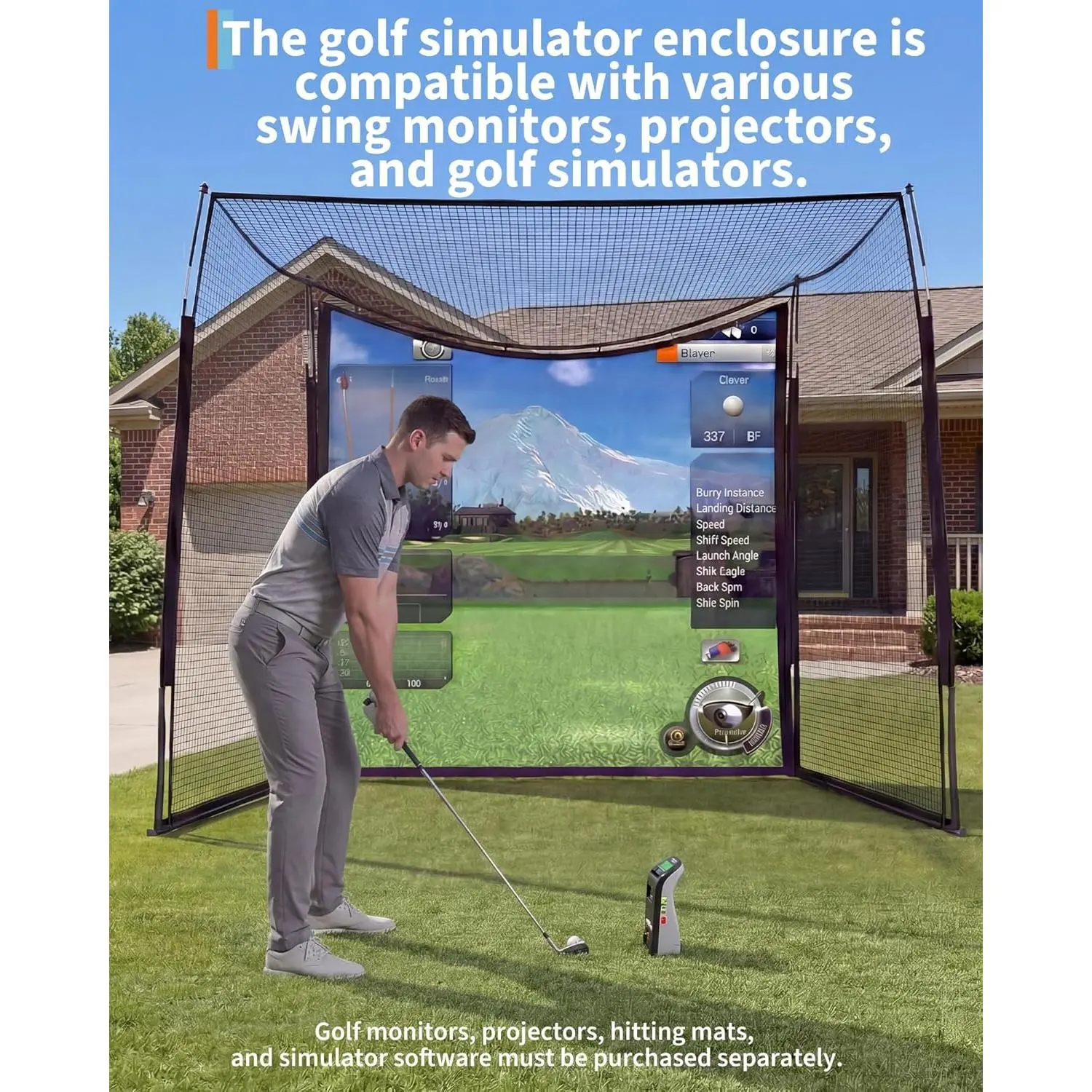 10ft Golf Hitting Net with Blank Simulator Screen, 10 x 8 x 5.7ft Golf Practice Net Frame Set, Iron Frame with Fiberglass Support Shafts, for Players of All Skill Levels