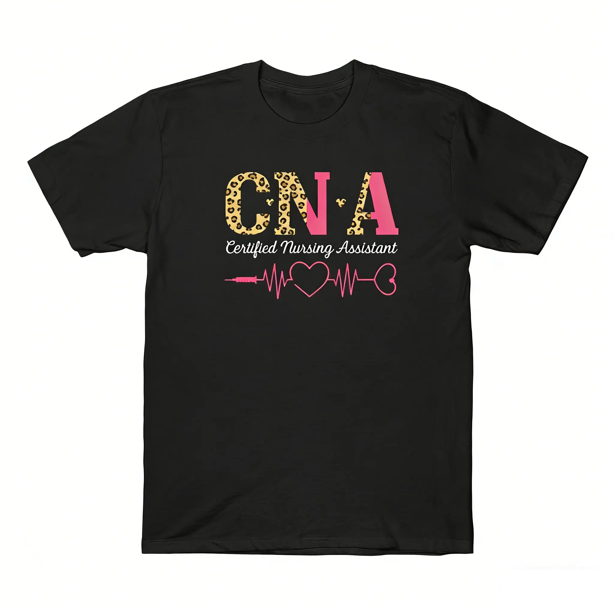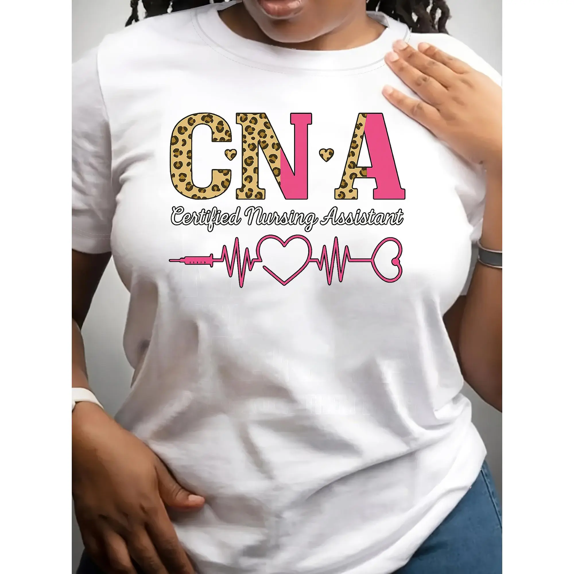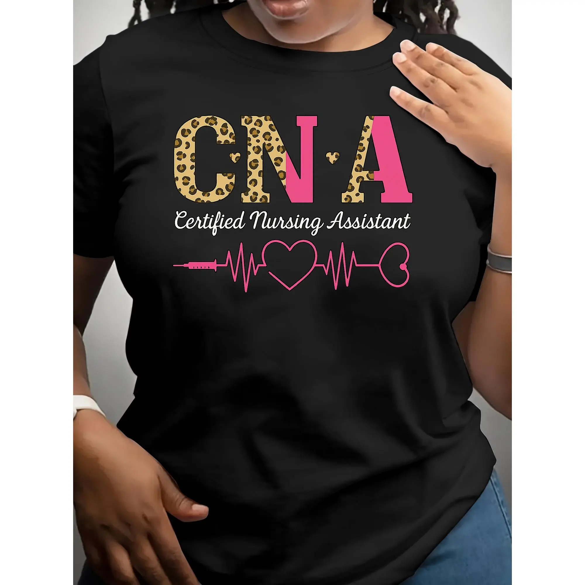 Letter Print T-shirt, Leopard Print Retro Style Short Sleeve Casual Top for, women'S Clothing