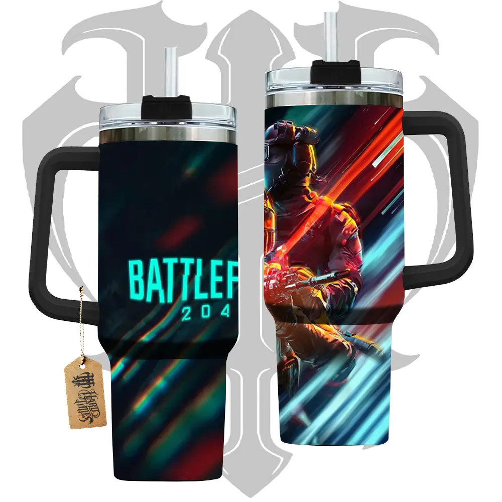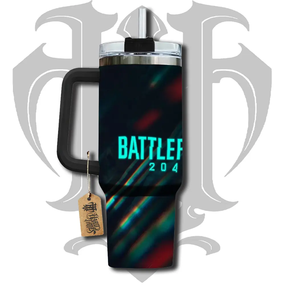 HardTimesMerch - Battlefield 2042 #1 40oz Handle Tumbler Stainless Steel Travel Mug, Game Inspired Vacuum Insulated Cup, Large Iced Coffee Tumbler, Manga Fighter Drinkware, Gamer Gift for Him Her