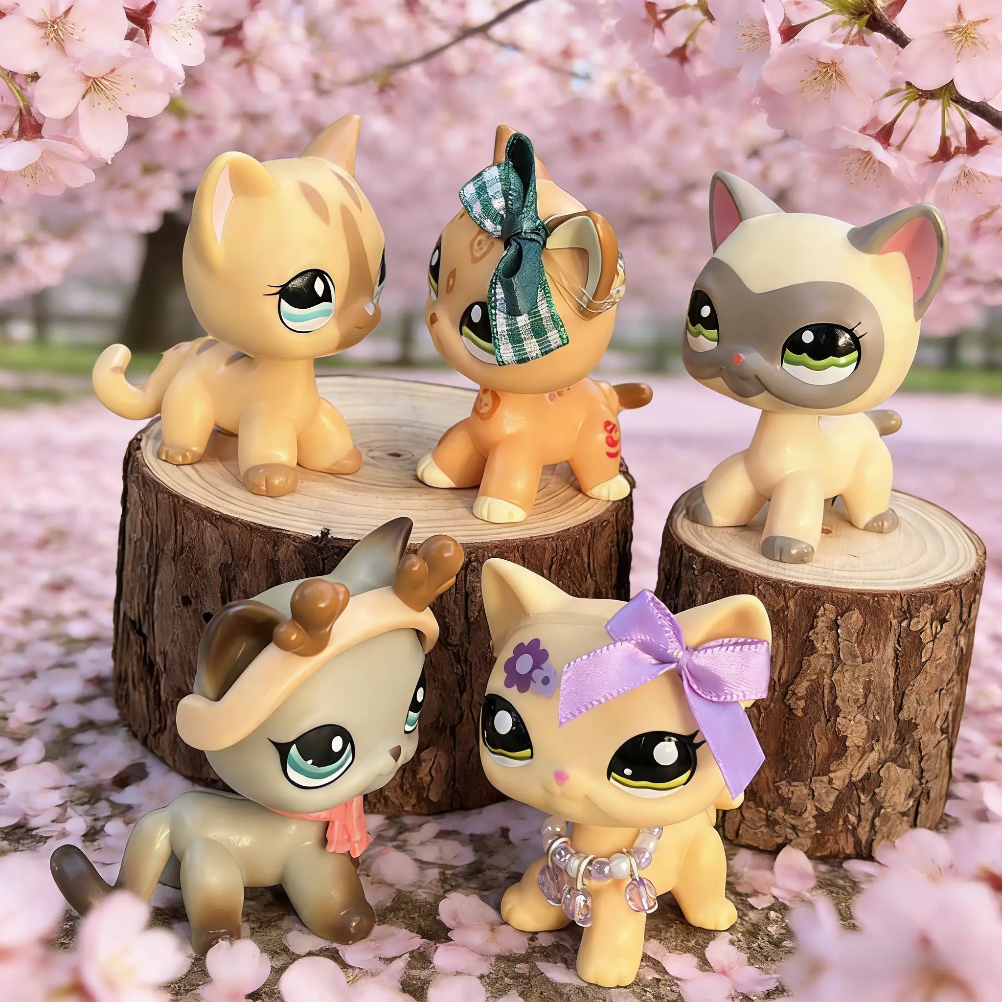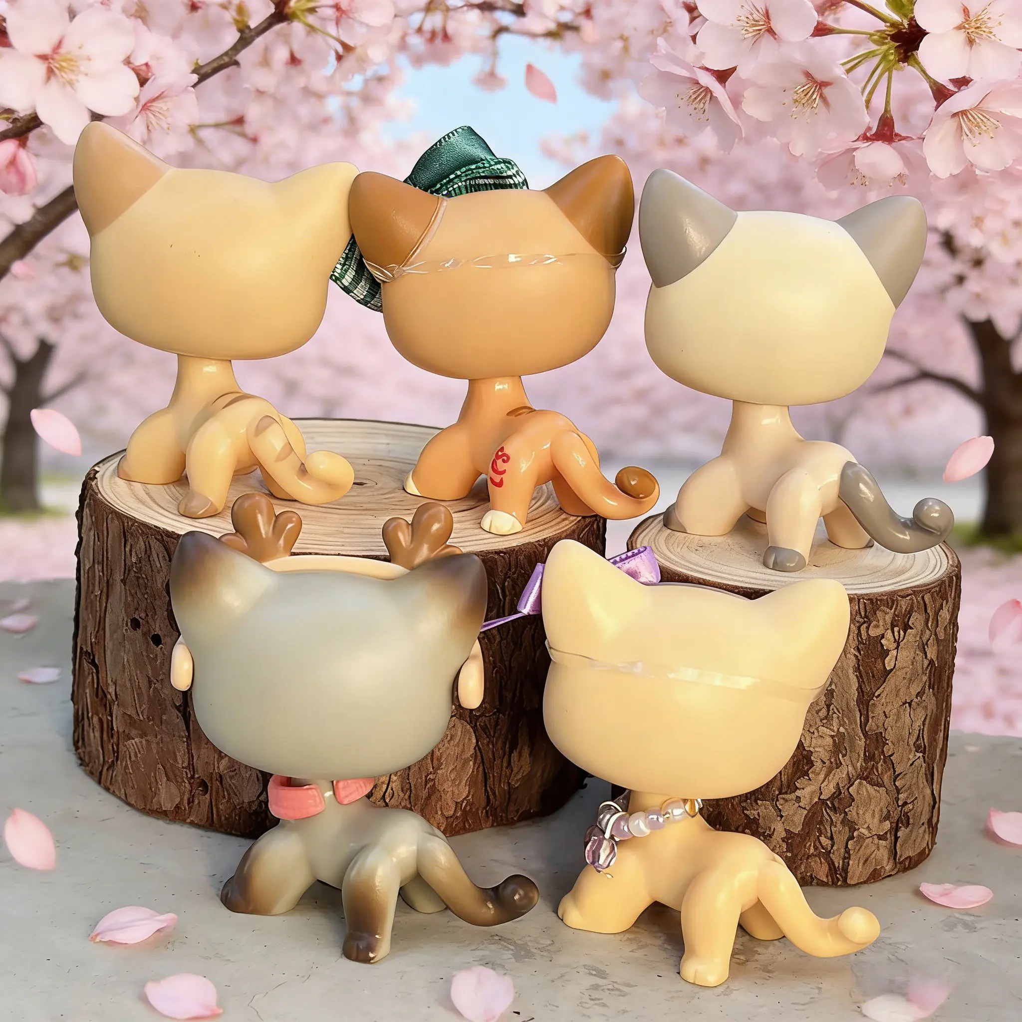 5Pcs Mini Pet Shop Shorthair Cat Indoor&outdoor Statue Collectable Mini Pet shorthair Cat #886 #1120 #391 #1116 #1962 with Cute Accessoires for Christmas Birthday Halloween Gift