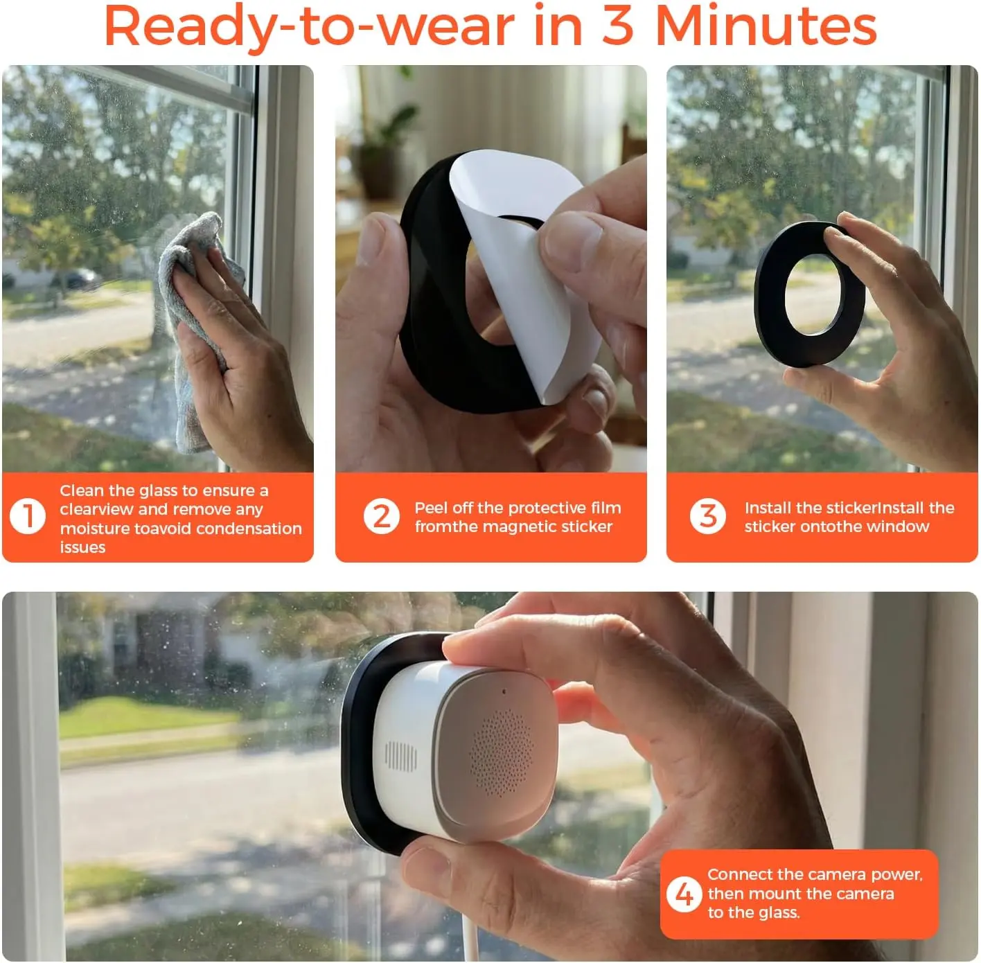 Rraycom 4MP 2.5K window camera, 2.4 GHz & 5 GHz Wi‑Fi indoor cameras for home security with premium AI starlight full‑color night vision, person and motion detection, 24/7 recording, easy and quick installation