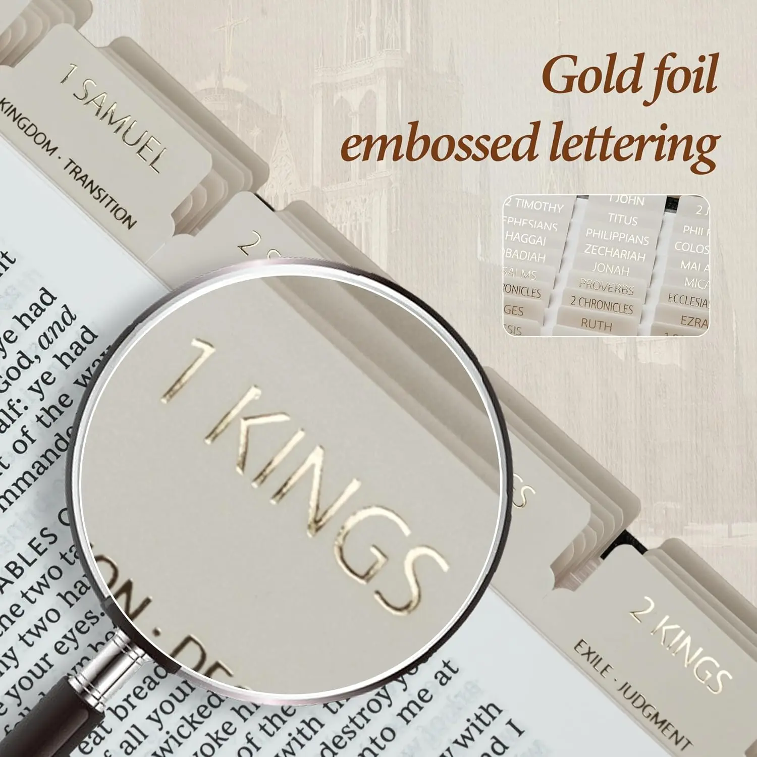 ·Unique: Cream Bible tabs with summary descriptions and Gold Foil Embossed Lettering.This is the ideal christian gi.ft. These unique Bible index tabs make a great gi.ft for your girlfriend, mum, or anyone who loves beautiful things in life.