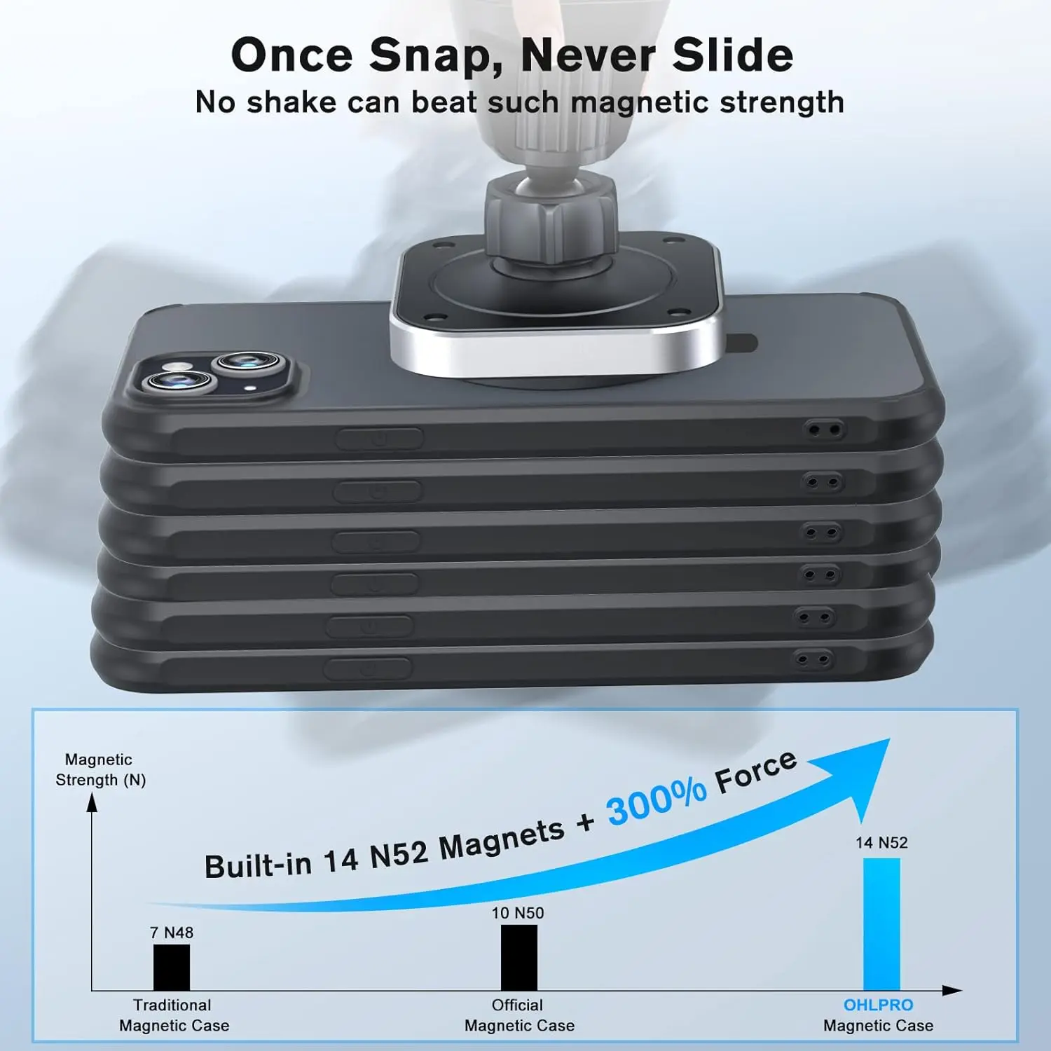 2.Wearing a magnet phone case can reach 1.38KG suction force and suck up 10 iPhones 13mini at the same time;