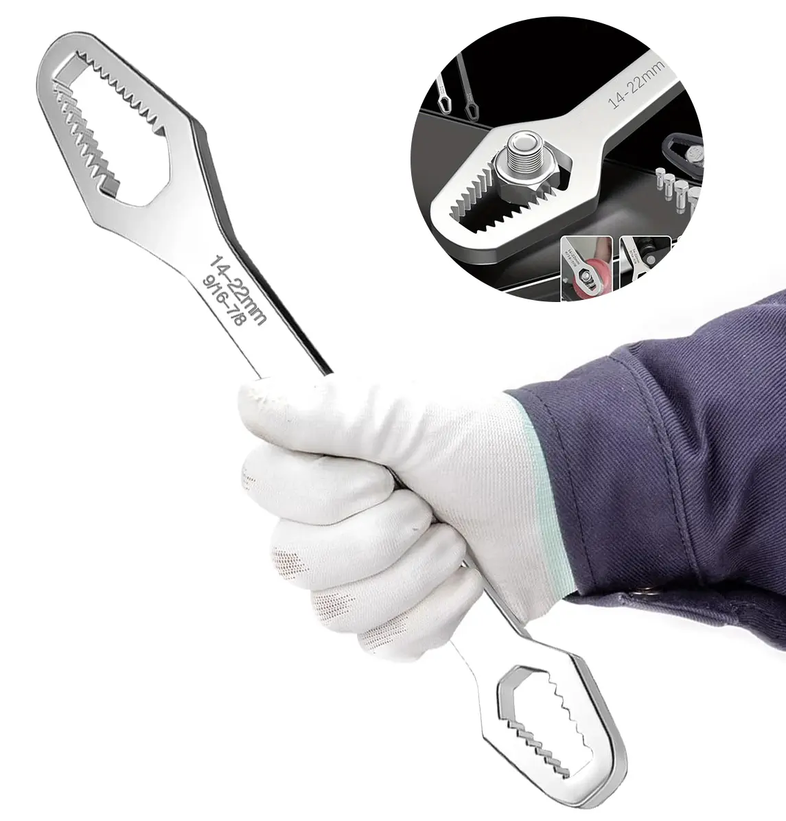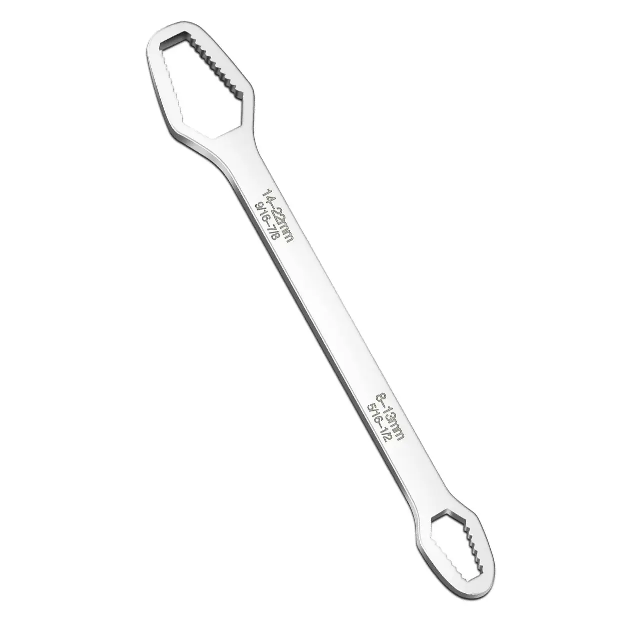 Multifunctional Silver Torx Wrench Adjustable Self-Tightening Double Head 8-22mm Universal for Auto Repair & Home DIY Projects