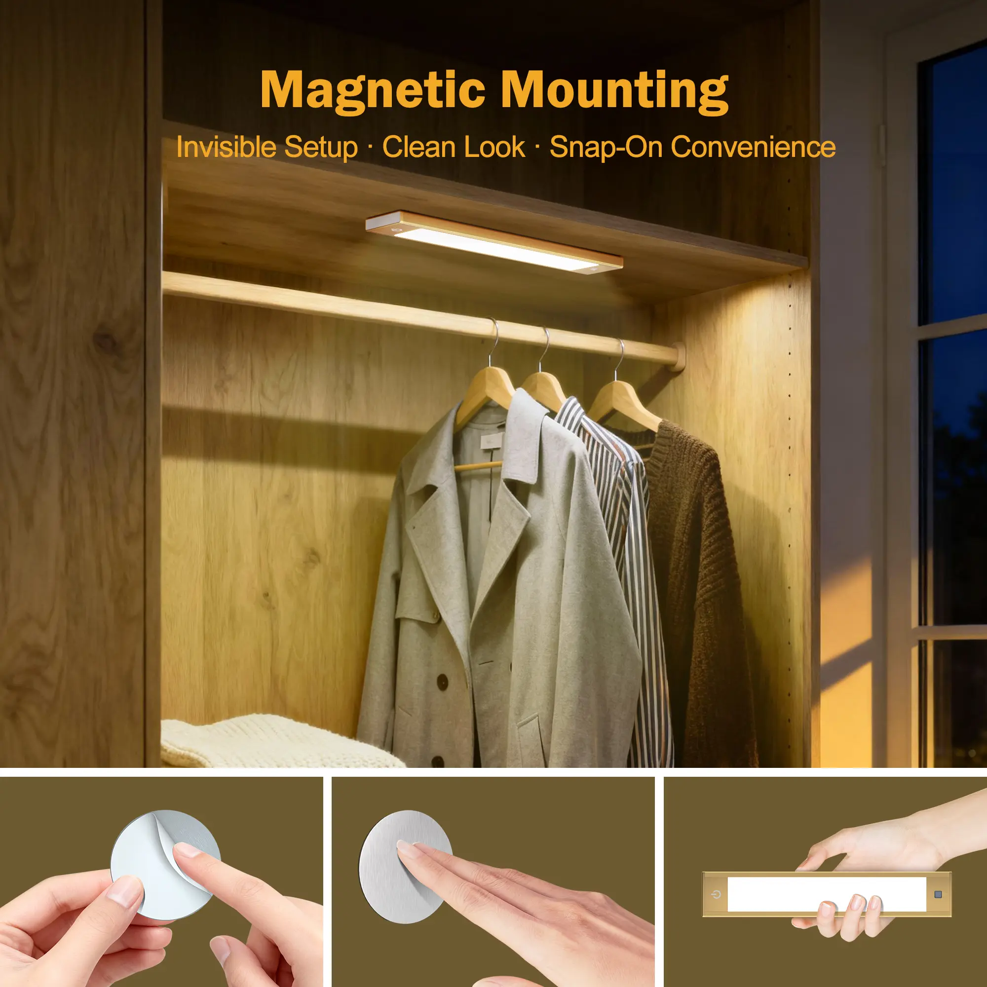 ·[Easy Installation & Wide Usage]: With built-in strong magnets, No need drilling. It can be adsorbed directly on ironwork surfaces. Or use the included adhesive metal plates to stick on anywhere you want. That also means it’s easy to take off and put back on when it needs a charge. Great Safe Night lights for kitchen, clooset, cupboard, pantry, basement, stairs, hallway, bookshelf, etc.