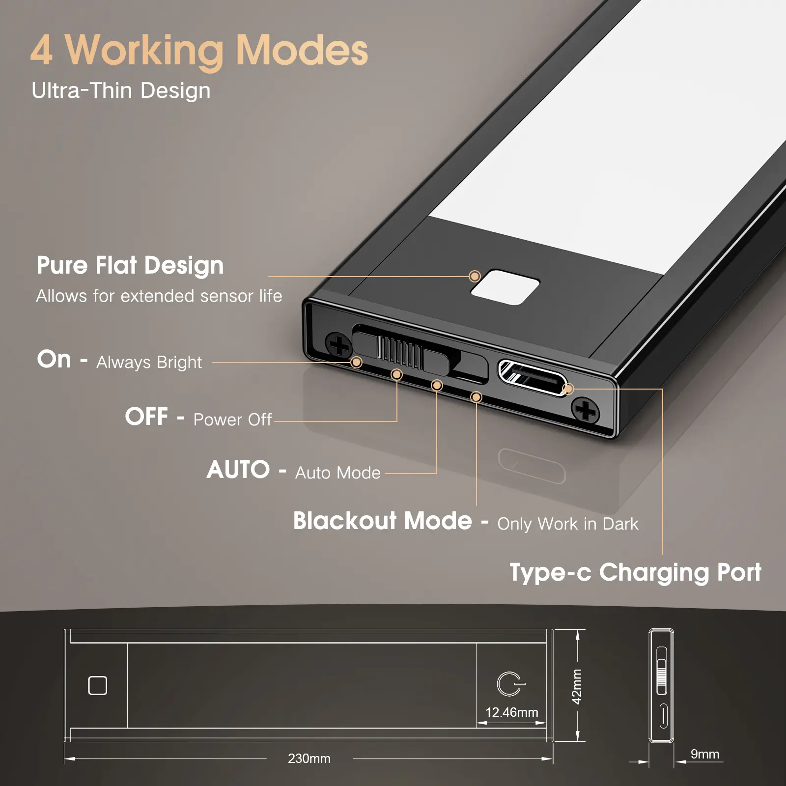 ·[New Motion Sensor & long-Lasting Use]: The latest flat sensor design extends the life of the motion sensor light, it can sense and light up within 10ft and 120° of the lamp. With 1800mAh rechargeable battery inside, after fully charging, this kitchen cabinet lights last up to 3-5 hours under ON mode and almost 1 month under NIGHT mode. No more Extra AA/AAA Battery. Energy Save & Save More Money!