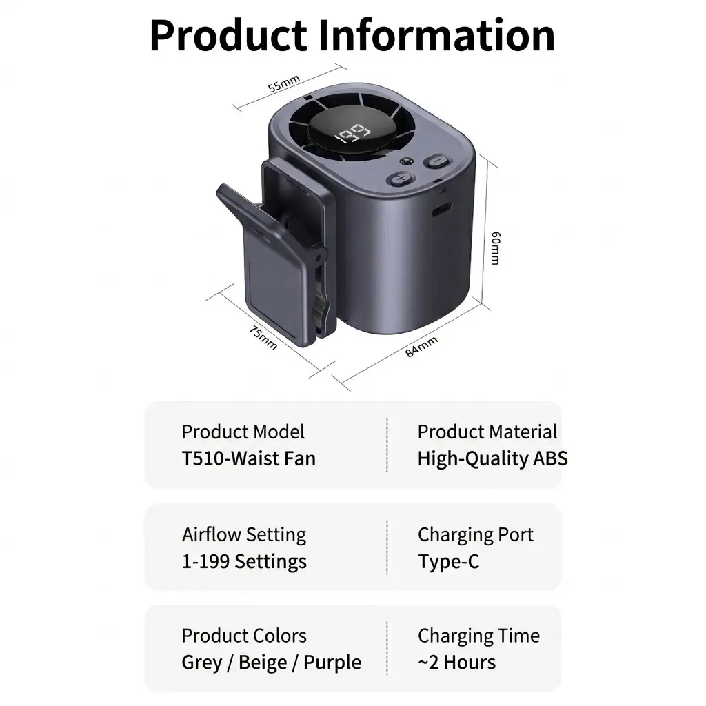This clip-on fan is perfect for various settings. It features a 360° rotation, ensuring you can direct the airflow exactly where you need it. The fan comes with an LED display, adding a modern touch to its functionality. Ideal for both home and office use, it adapts to your needs effortlessly.