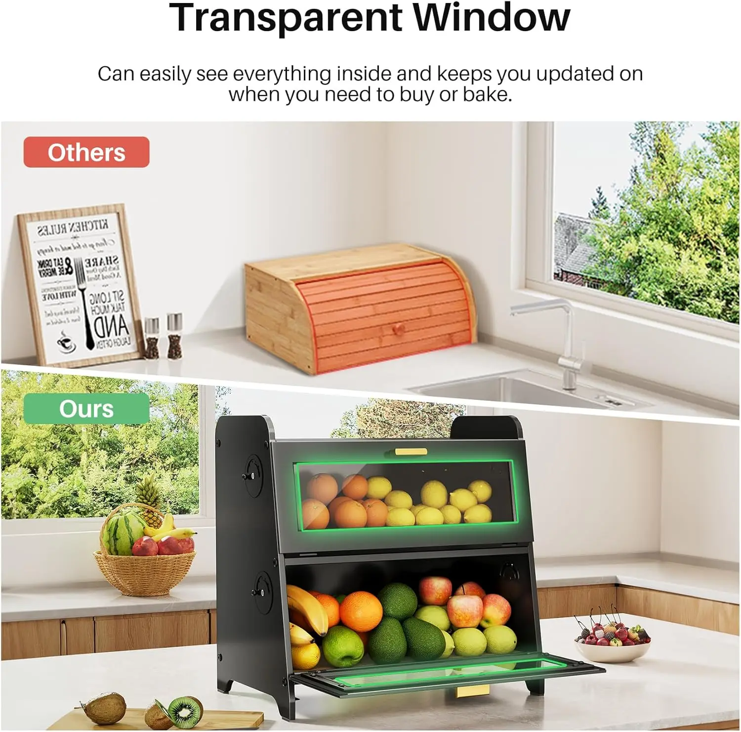 ·Transparent Door for Easy Viewing: The built-in transparent window allows you to check your bread's freshness at a glance without opening the door.