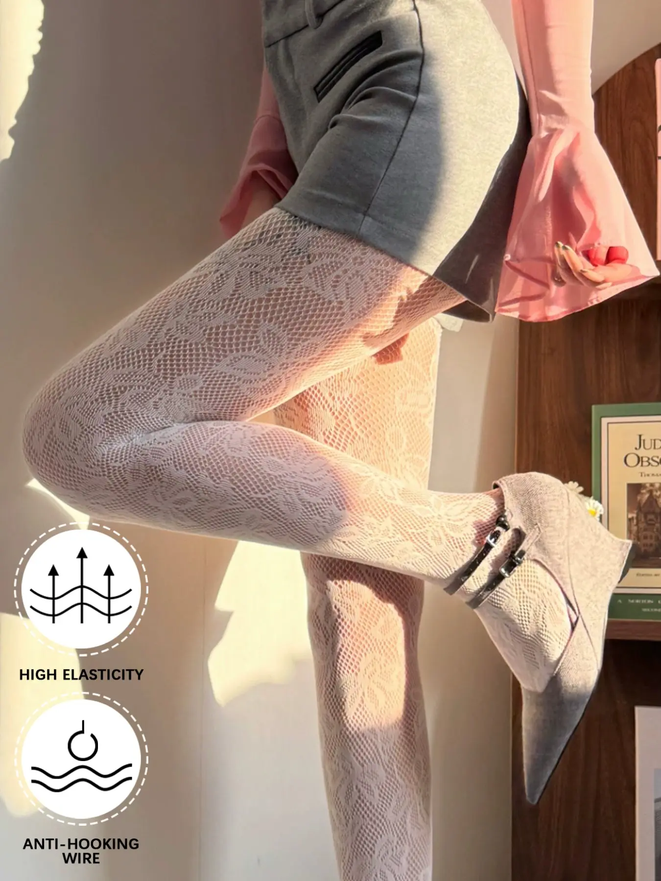 French Vintage Floral Mesh Stockings, Summer Thin Bottom Pantyhose, Sexy Anti-Slip Fishnet Socks, Slimming, Casual Wear
