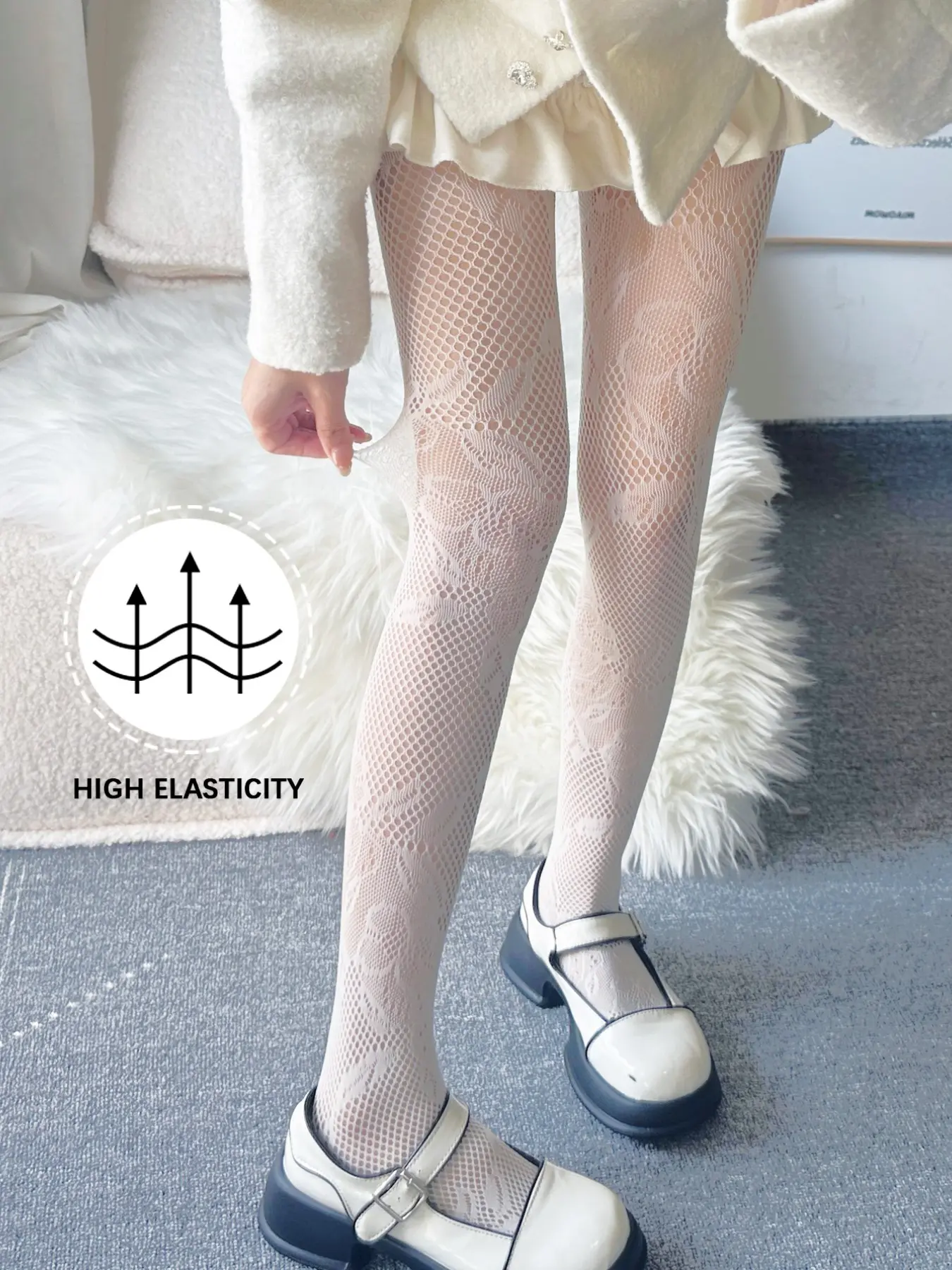 French Vintage Lace Mesh Stockings, Thin Hollow Out Flower Pattern Pantyhose, Boho Style, Fitted, Women's Fashion Accessories