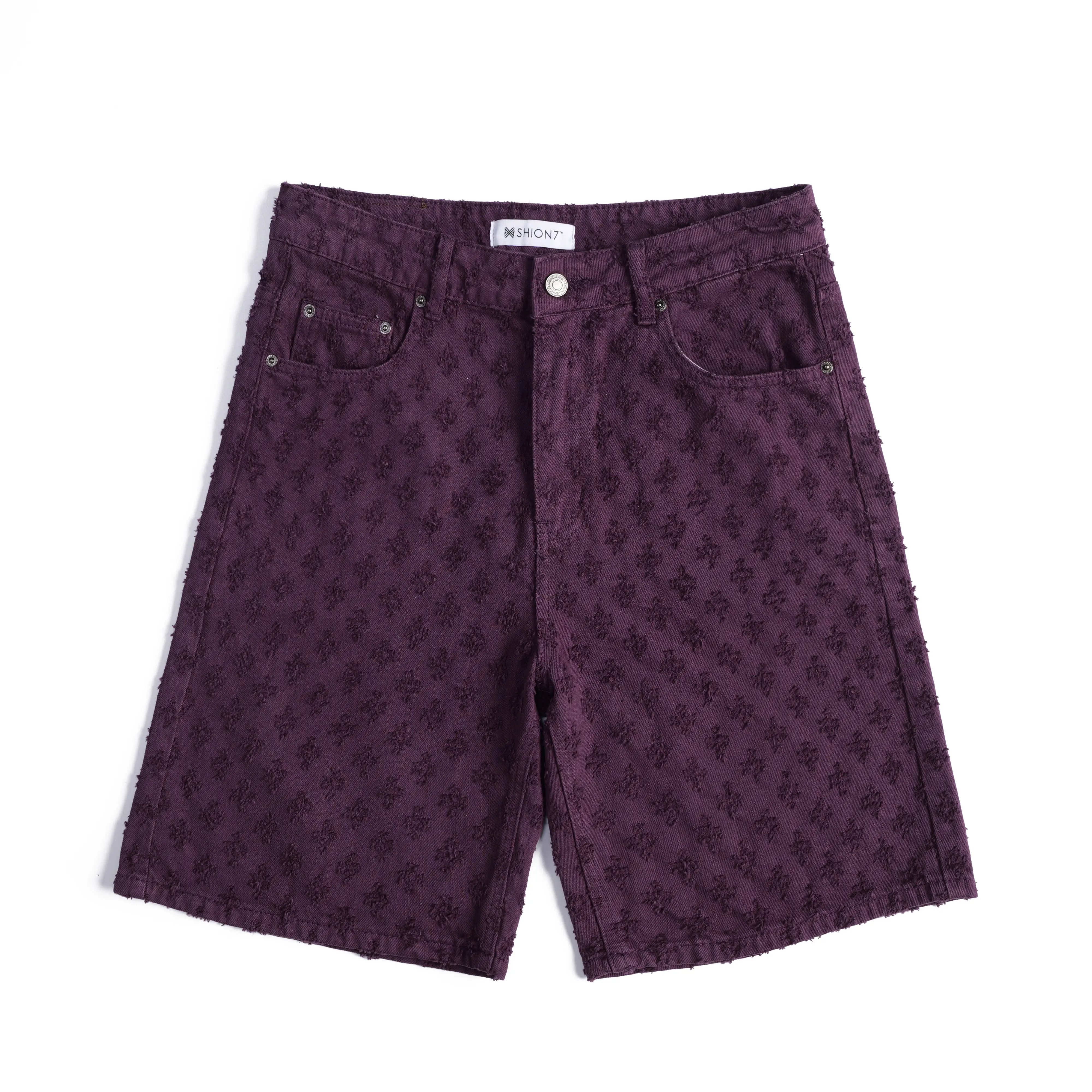 ·Purple Jacquard Denim Shorts: Perfect for men seeking a stylish streetwear look. These shorts are baggy and Y2K-inspired, ideal for casual summer wear. 🌞