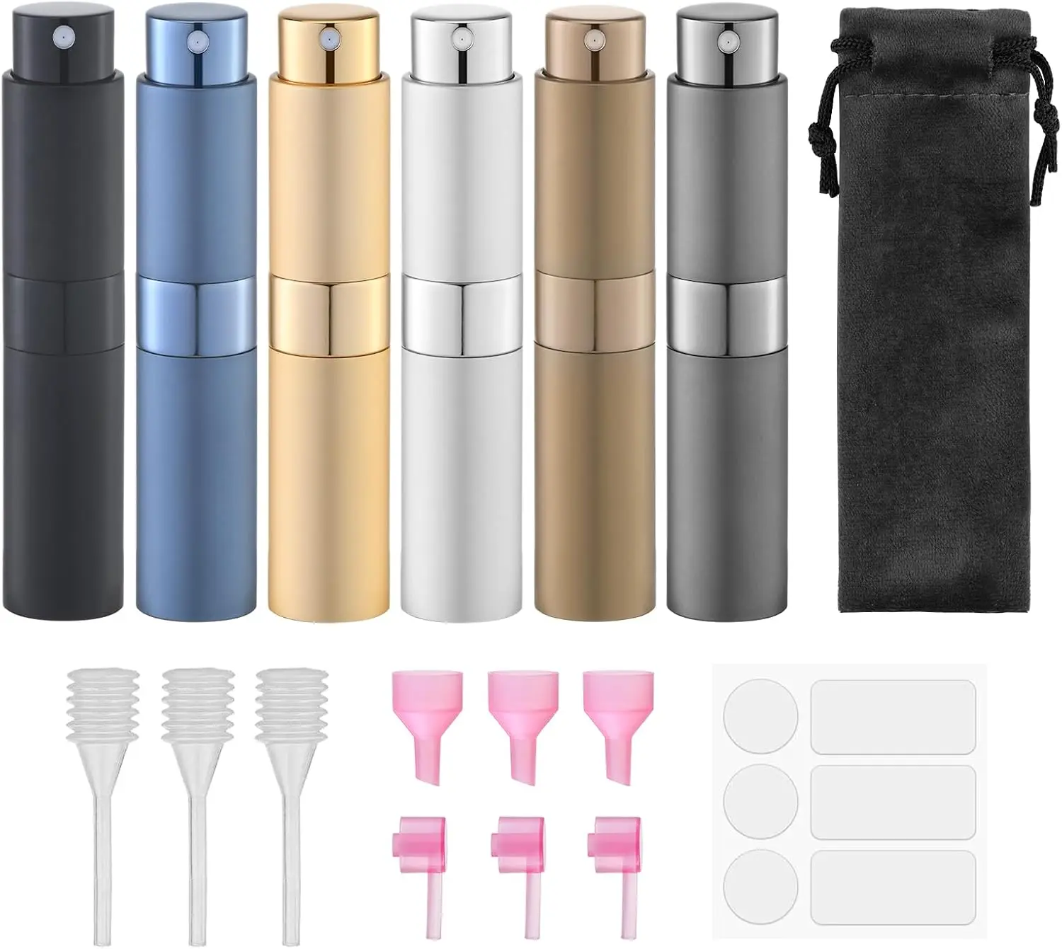 ·Travel Fragrance Atomizer - Elevate your scent game on the go with this small perfume spray bottle refillable set! Designed for women, men, kids, these 8ml travel spray bottles TSA approved are your ultimate travel must haves for airplane journeys. Effortlessly carry your favorite perfume, cologne, or aftershave. Its compact and portable design fits perfectly in your purse or pocket, making it ideal for any adventure. This is a great travel essential!
