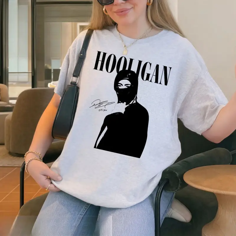 Hooligan Graphic Tee, Dark Streetwear Shirt, Kpop Inspired Rebel Aesthetic.