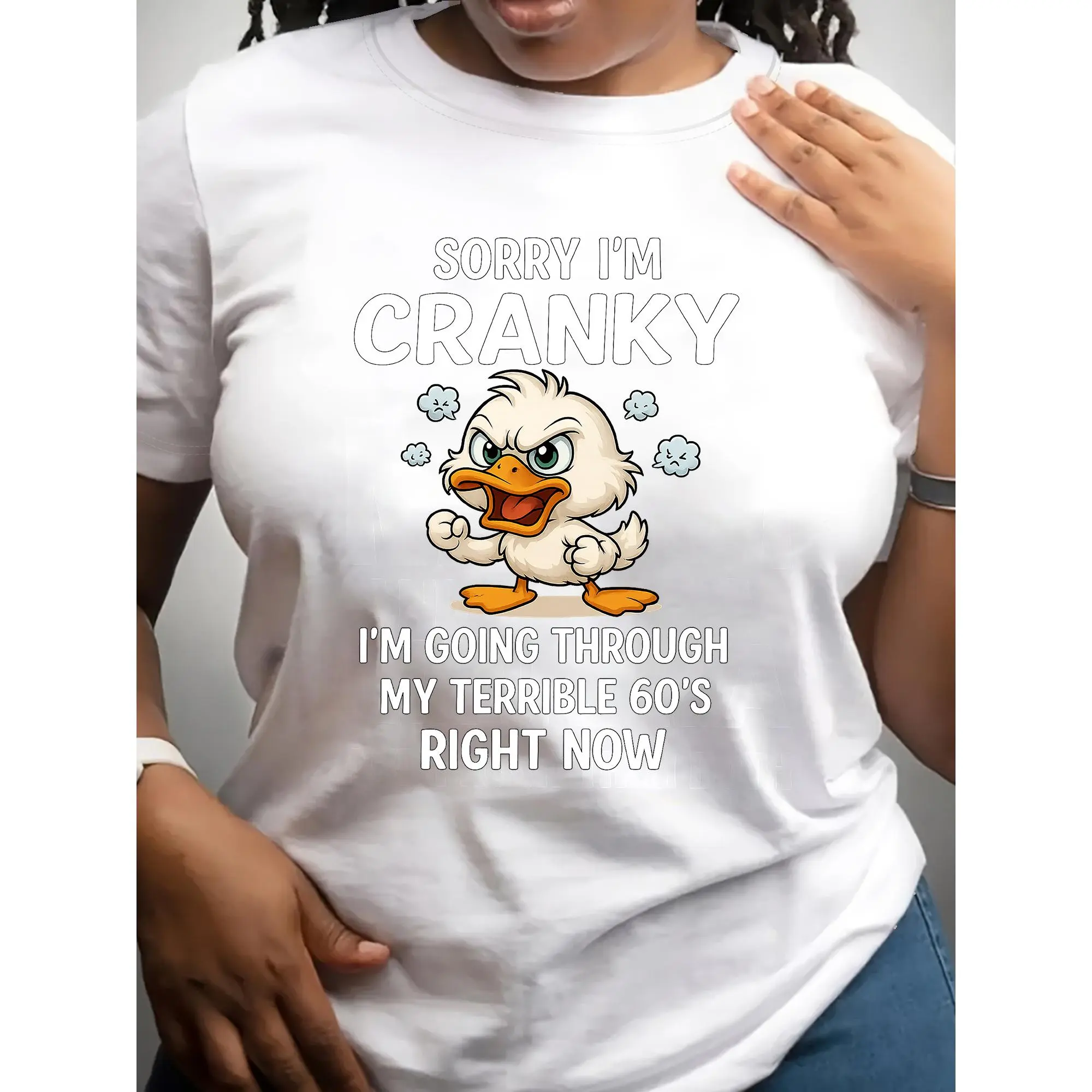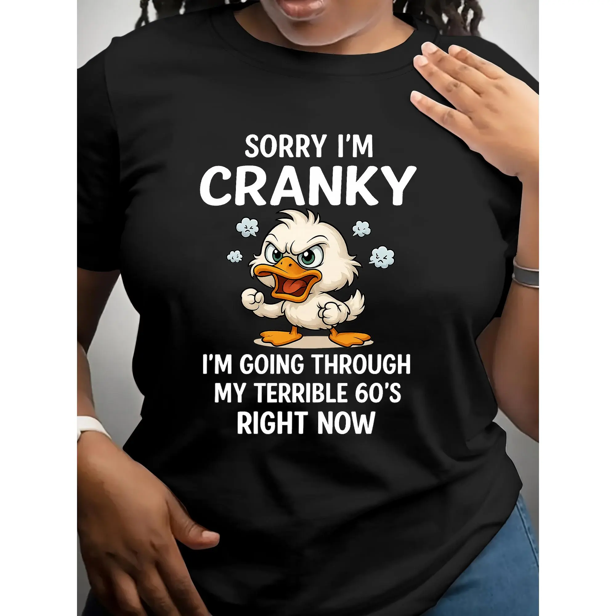 Duck Sorry I'm Cranky I'm Going Through My Terrible 60's Right Now T-Shirts, hoodie, long sleeve, round neck, Black font