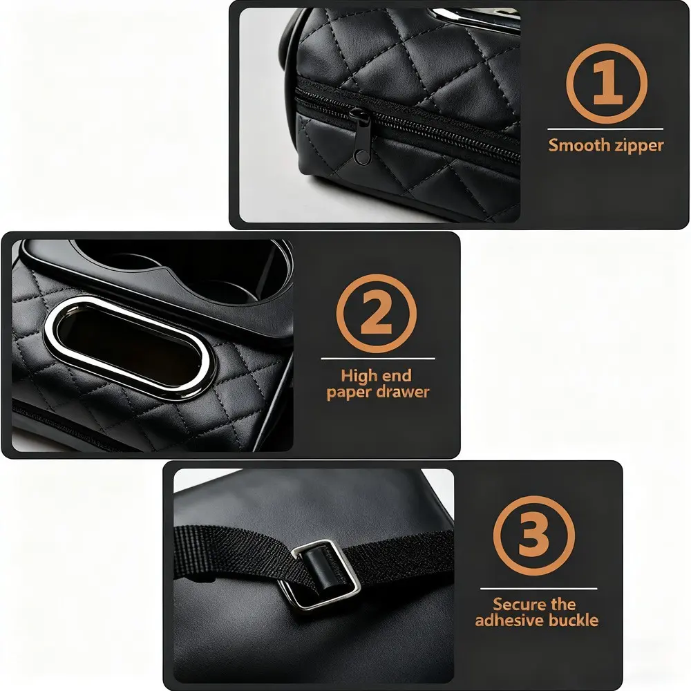 Designed with elastic fixing straps, it installs firmly in the center console without complicated steps. It provides a convenient use experience. The organizer has good elasticity, rebounding within 6 seconds, offering comfortable support for long-distance driving.