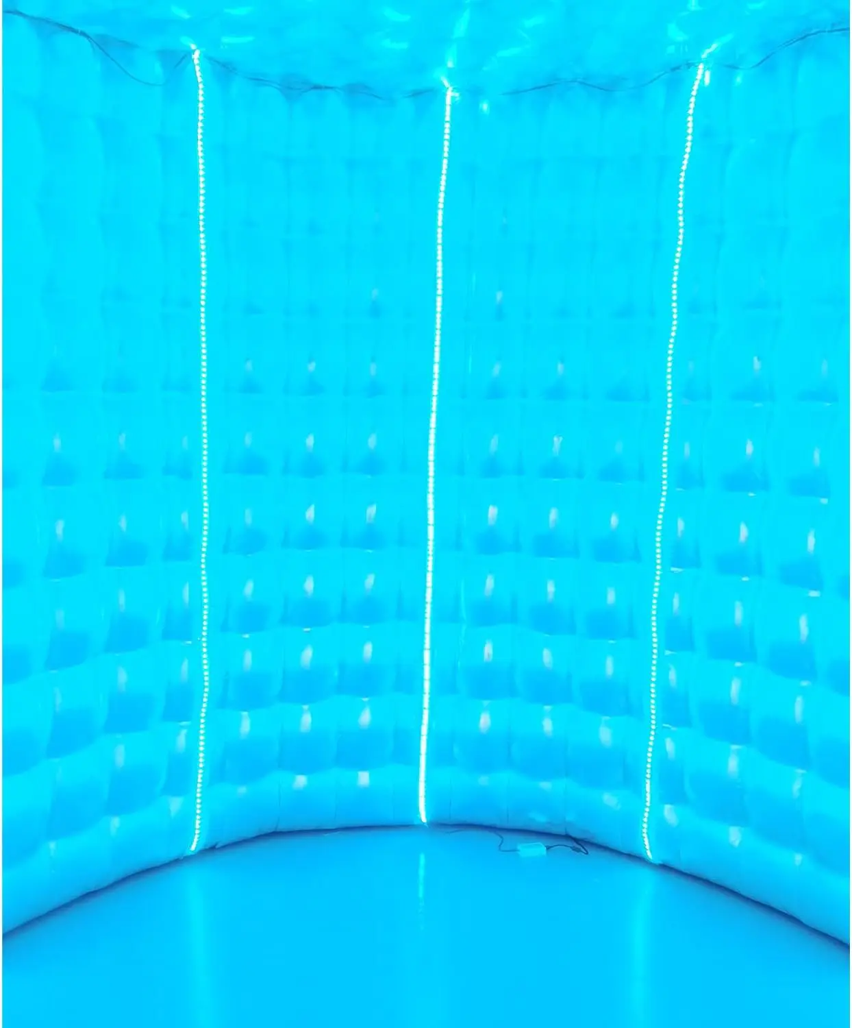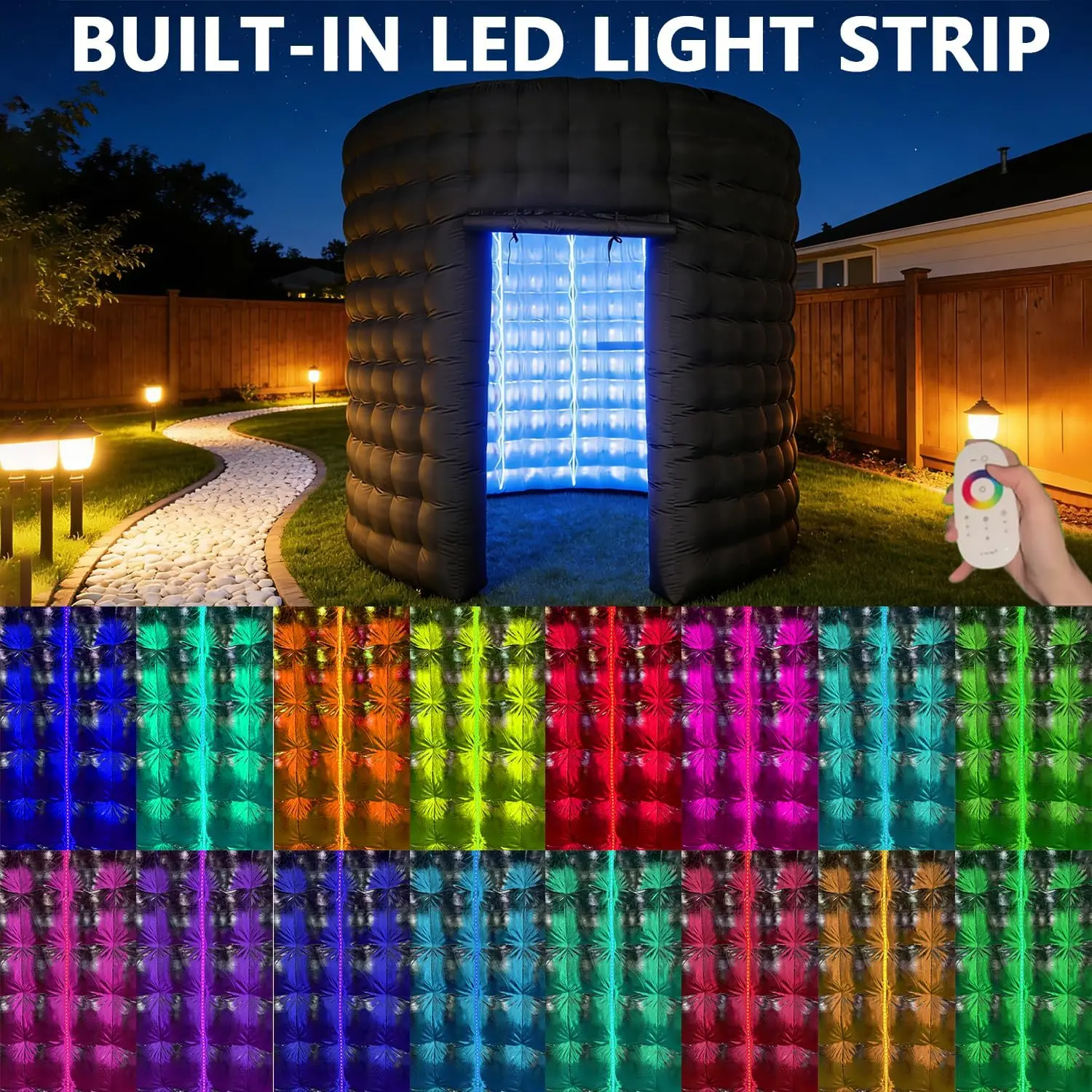 Our This Inflatable photo booth use with spin 360 Camera Photo Booth(NOT include), Available for any type of event, celebration or parties, weddings, birthdays, corporate, gatheries etc. 9PCS led strip lights been built on the walls, main 7 lights colors, other lights mode can be remote via touch color ring, mode, speed, brightness button. Let booth looks more stunning during at night. Creat a amazing colorful taking photo backdrop.