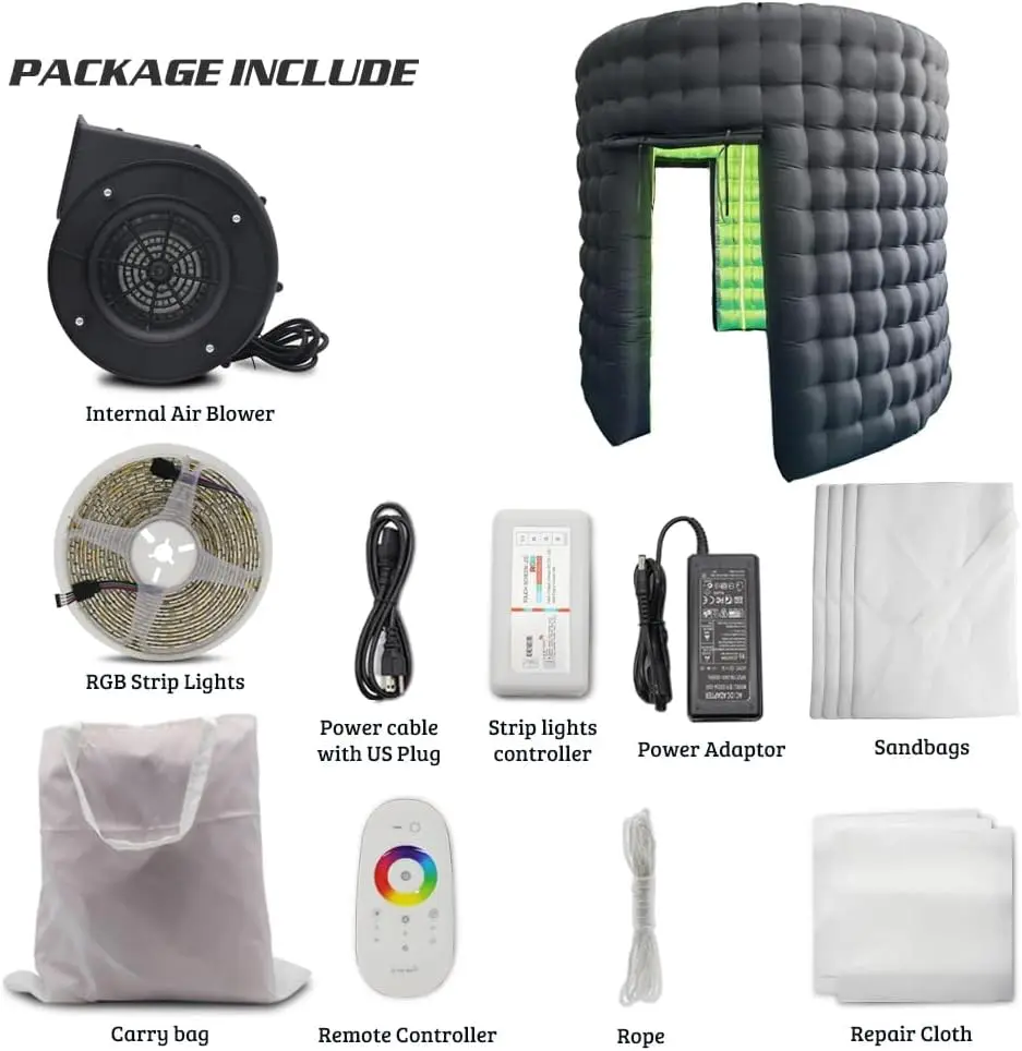 ·【FEATURES】-- Made of Durable oxford cloth-tear-resistant, suitable for indoor&outdoor; Black outside and silver inside-dirty-resistant; Easy to setup and deflate. 9 strip lights been fixed around inner wall of the booth; Lights easy to replace. 2 Black Door curtains detachable that replaceable to your own other color door backdrop; Touch screen led RGB controller Long Life 5000H, effective receiving distance nearly 30m(Remote Not include battery).