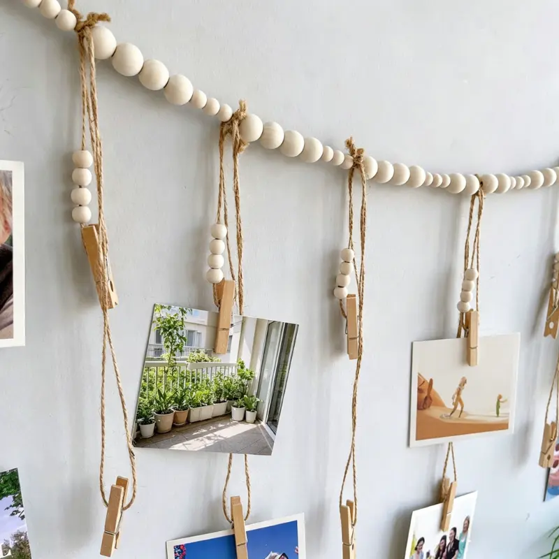 Boho Wooden Bead Photo Hanging String - The Perfect Way to Display Your Memories!
