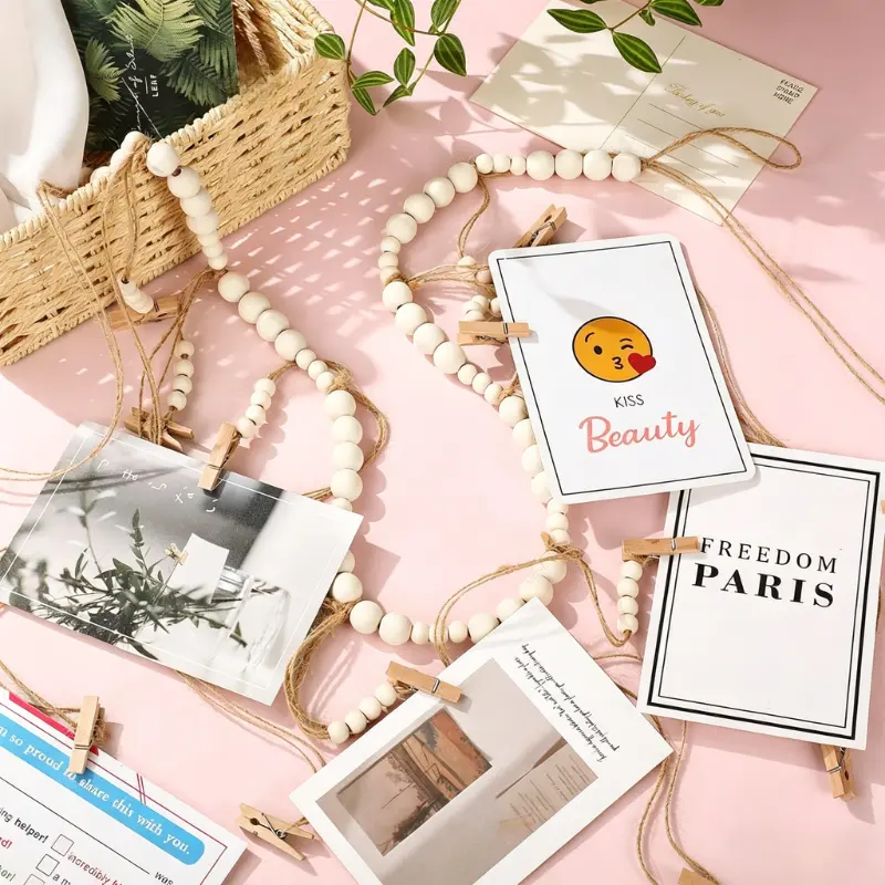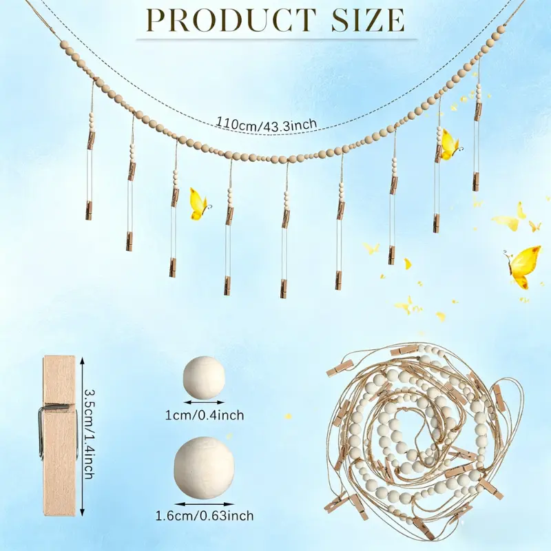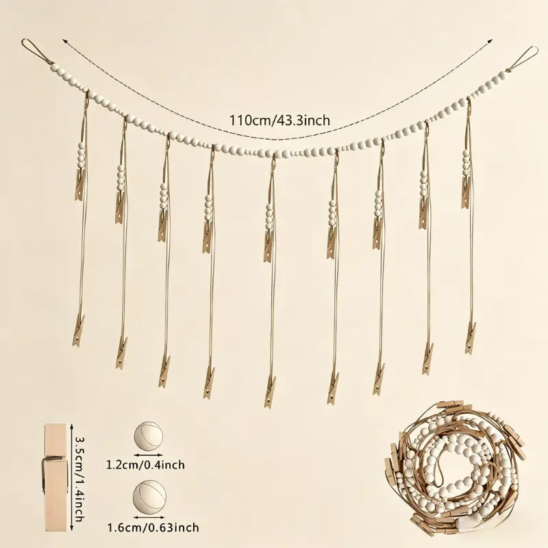 Crafted with smooth, natural wooden beads and durable jute twine, this garland brings a warm, rustic, and minimalist vibe to any space. The 9 wooden clips securely hold your photos without damaging them, making it easy to swap out pictures whenever you want.