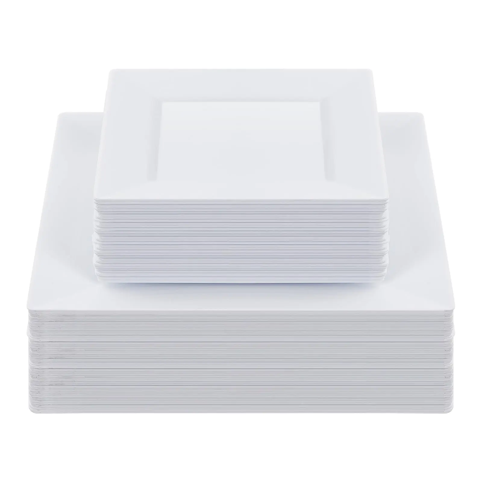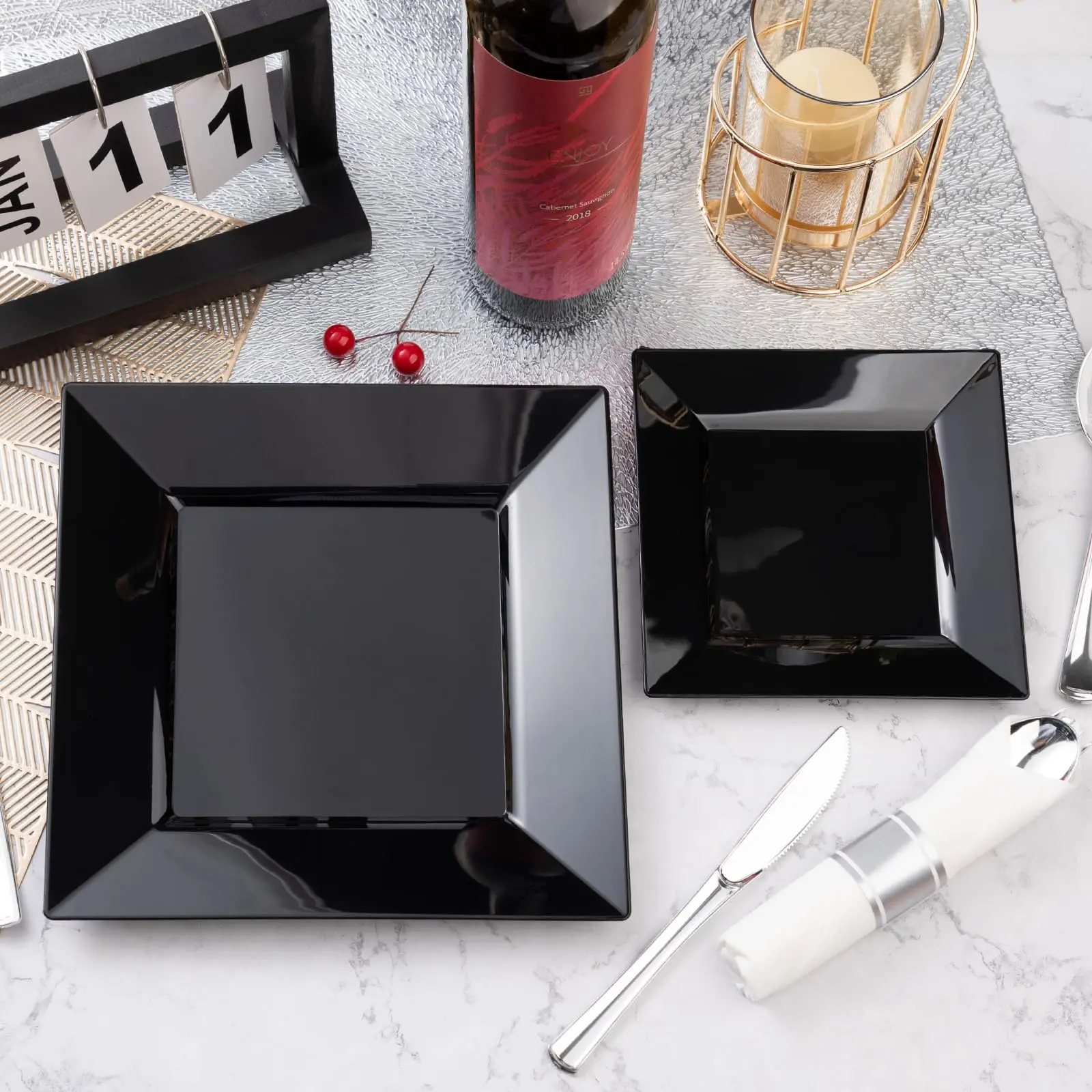 ·ELEGANT DESIGN - The square plastic plates have a depth that holds food with easy access. The delicate rim and glossy feel of this simple and classic design can be matched with a variety of colors of dinnerware for all occasions.
