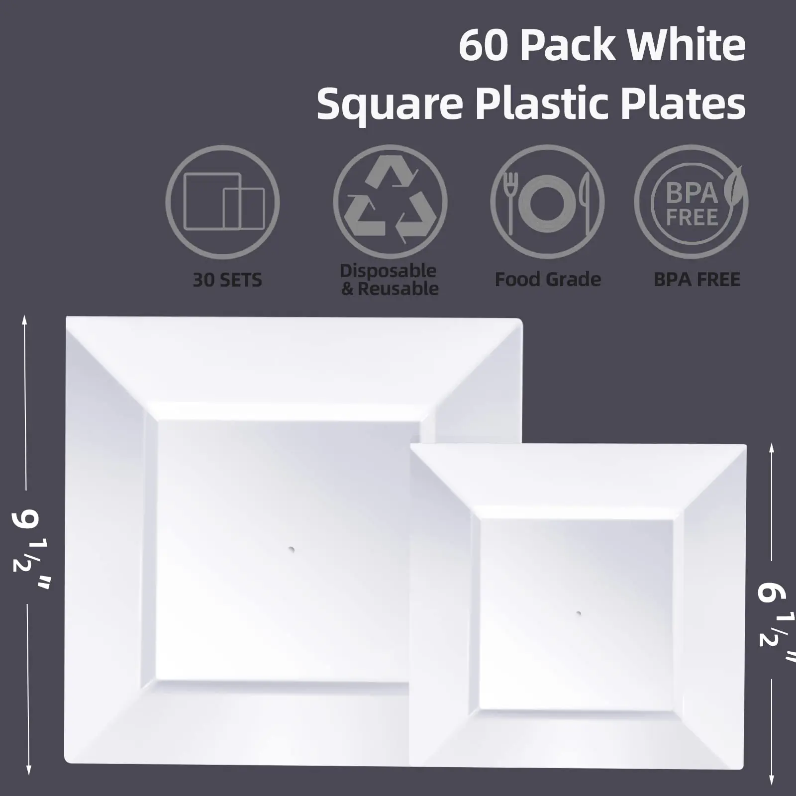 ·WHAT'S YOU GET - A convenient 60/100 pack that includes 30/50 9.5" dinner plates and 30/50 6.5" salad plates. Our disposable plates ensure a hassle-free post-party experience, freeing you to savor moments with family and friends.