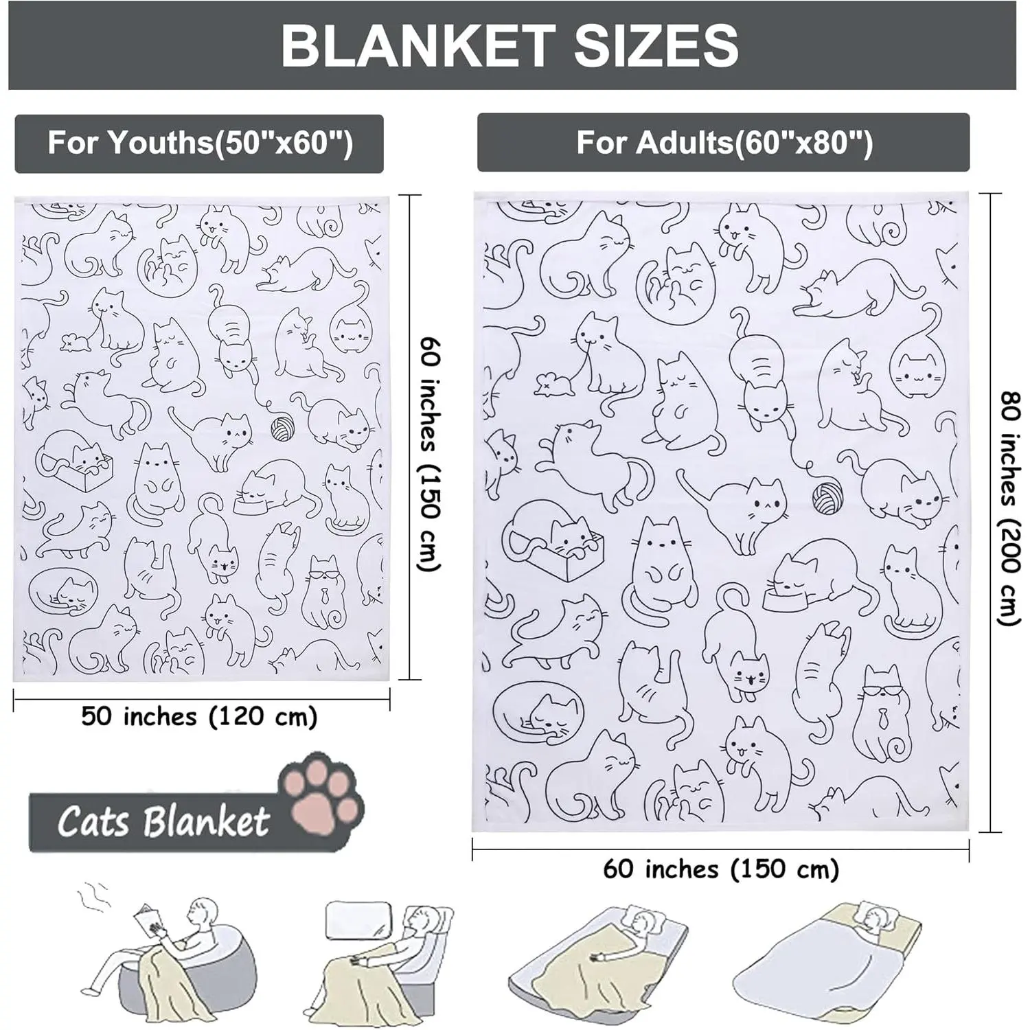 60*80 in(150*200 cm): Extra large – Double bed, family sofa