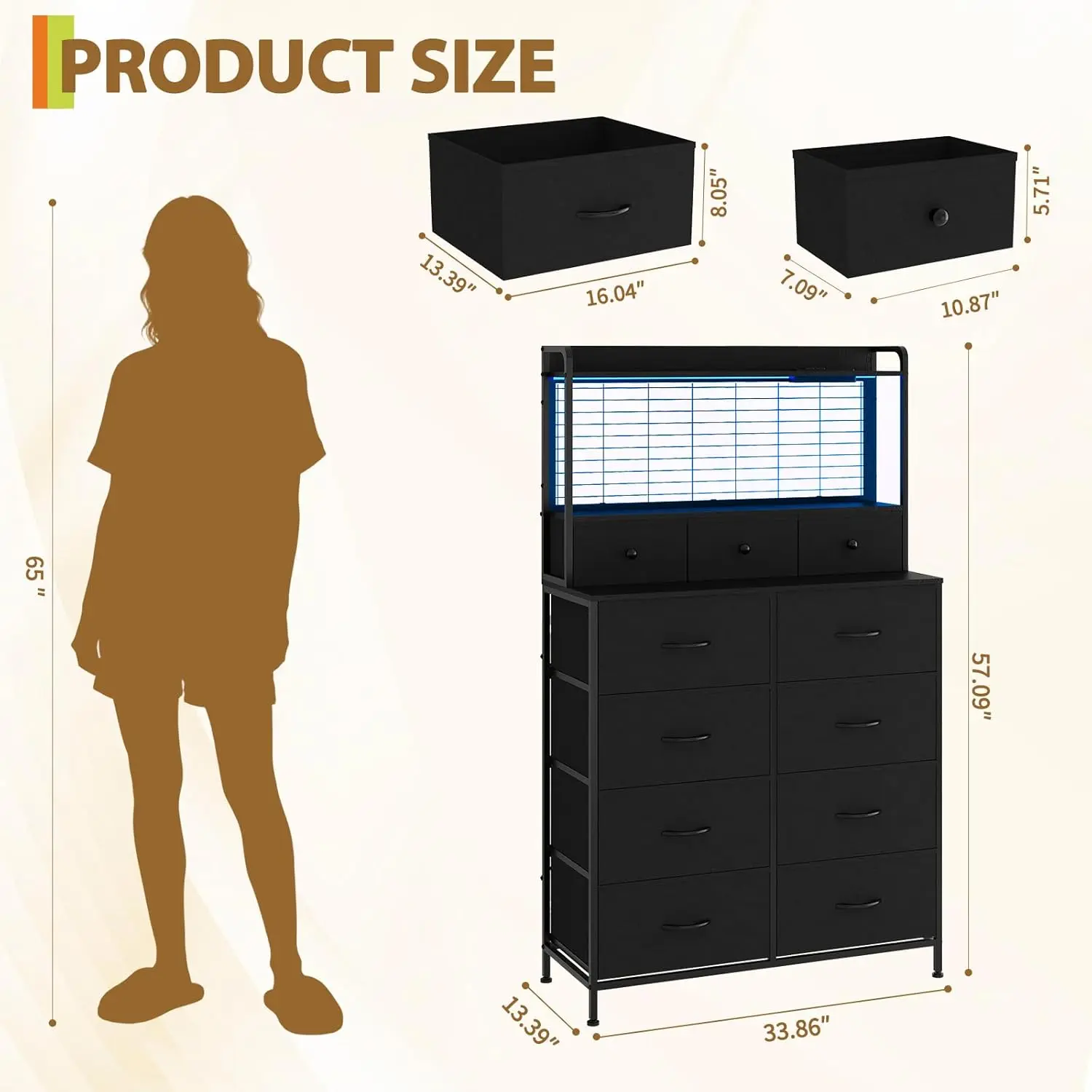 ·【Sturdy, Safe & Easy-Clean Construction】Built with a reinforced steel frame and durable particleboard for long-lasting use. Breathable non-woven fabric drawers are easy to maintain. The anti-tipping design ensures safety for any room.