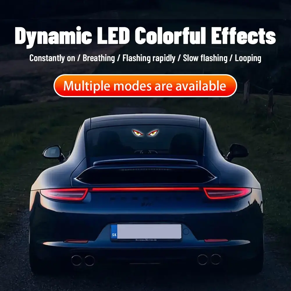 ·Eye-catching devil eye designAdds aggressive styling during the day and bold LED lighting at night; universal fit for all cars, SUVs, and trucks; easily mounts on front, rear, or side windows for a personalized custom look