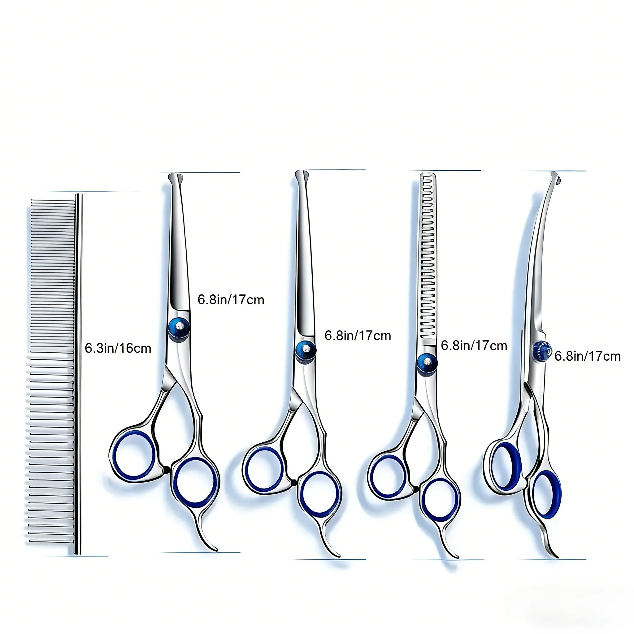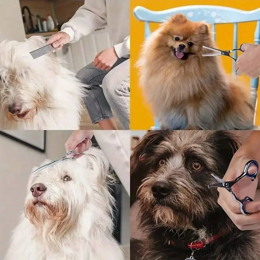 , including downward-curved scissors, straight scissors, upward-curved scissors, and a comb, to meet all your pet grooming needs.