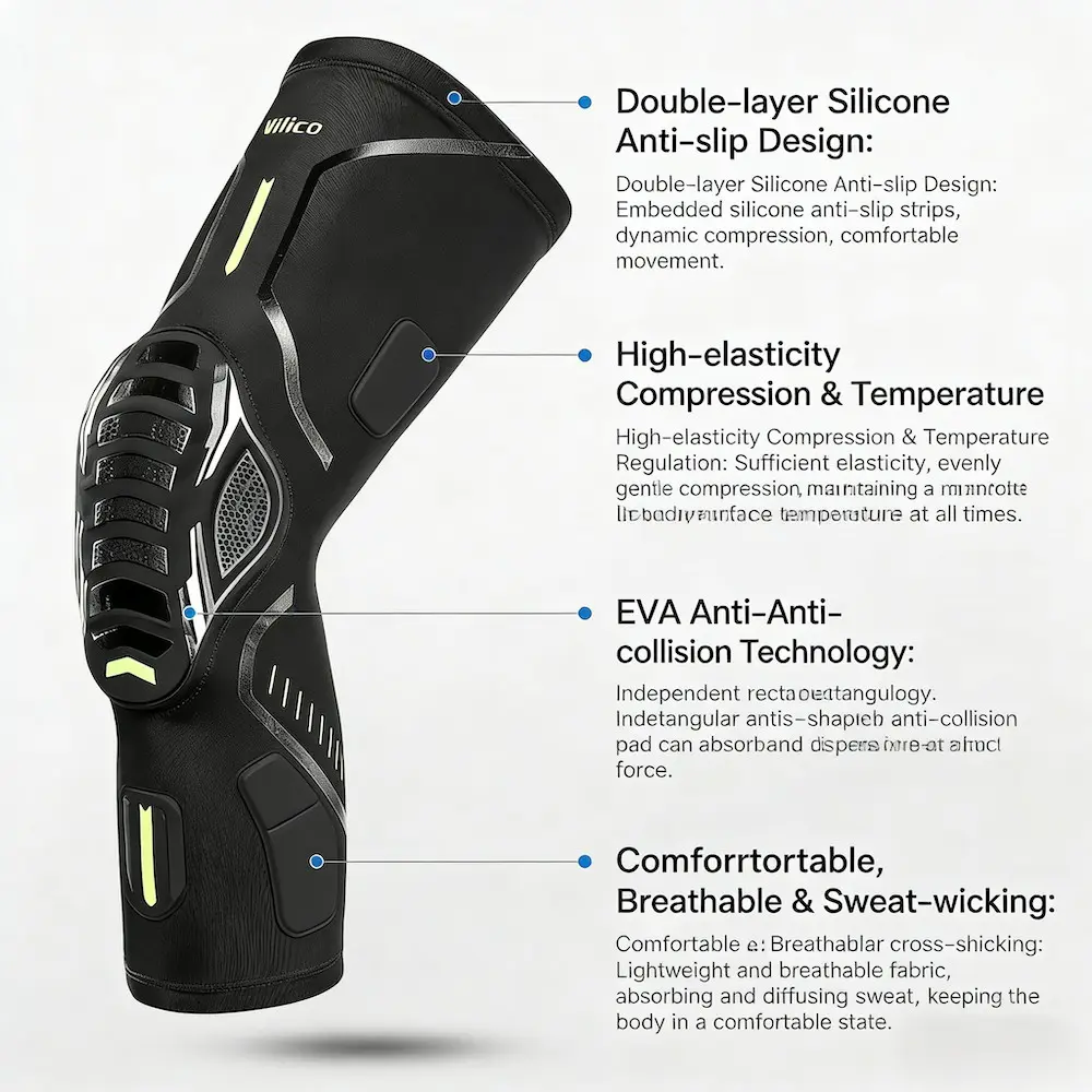 【Anti-Collision】: Features honeycomb anti-collision technology to protect knees during intense sports activities.