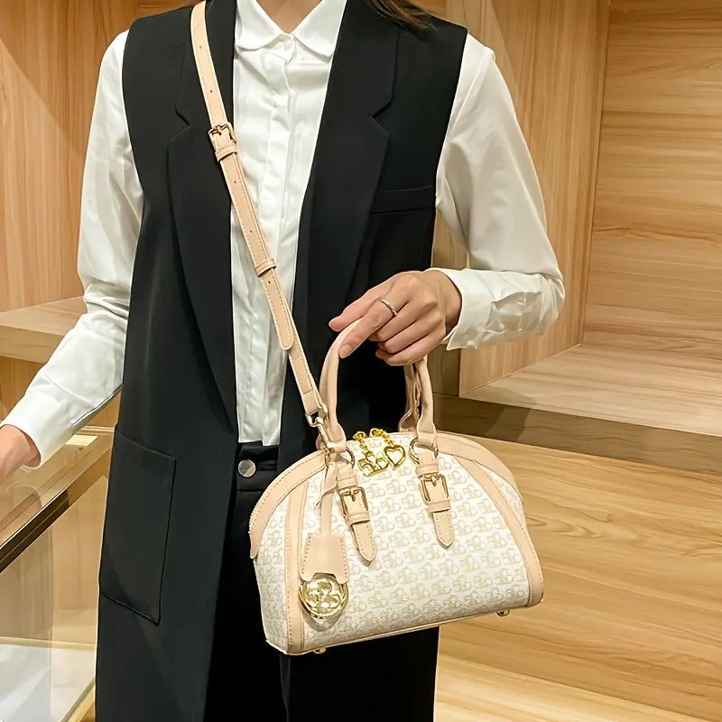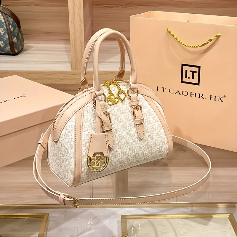 Vintage Monogram Dome Bag for Women Trendy Crossbody Top Handle Satchel