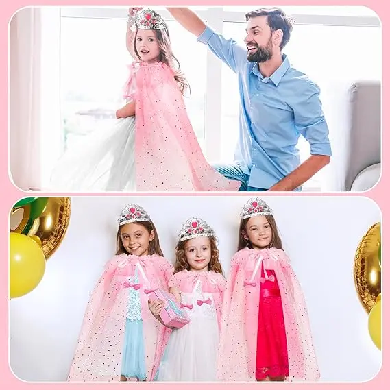 ·Safe and Durable:Our jewelry accessories are made of high quality, non-toxic plastic, with sturdy construction and gems no sharp edge, safe for kid's skin.The fabric of the cape is soft, comfortable and durable, providing safe and friendly protection for the little girl in the process of role-playing.
