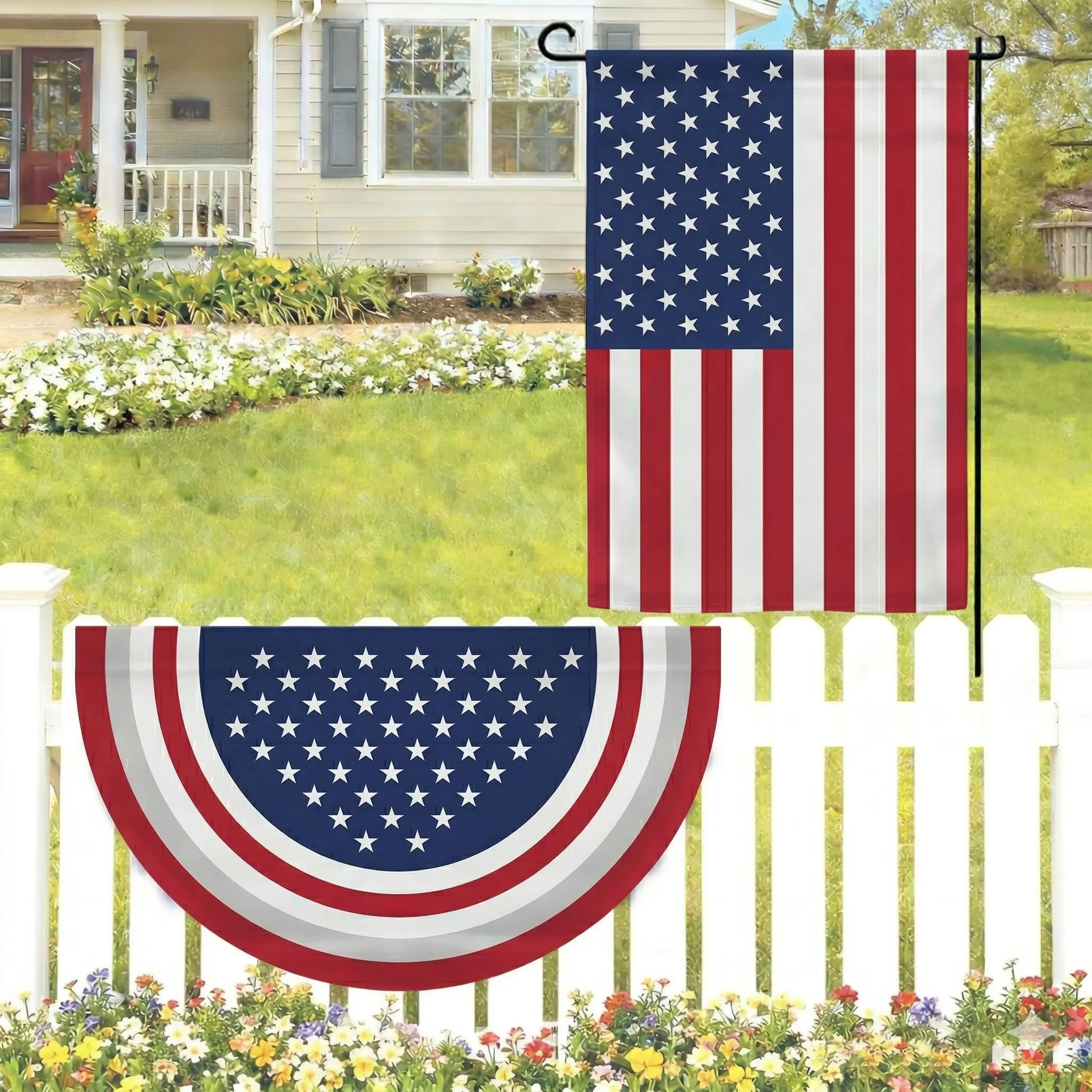 - 1 x Giant Semicircular Flag (36" x 72"): The ultimate hero piece! Hang this massive, vibrant banner across your porch railing or balcony to make a bold statement.